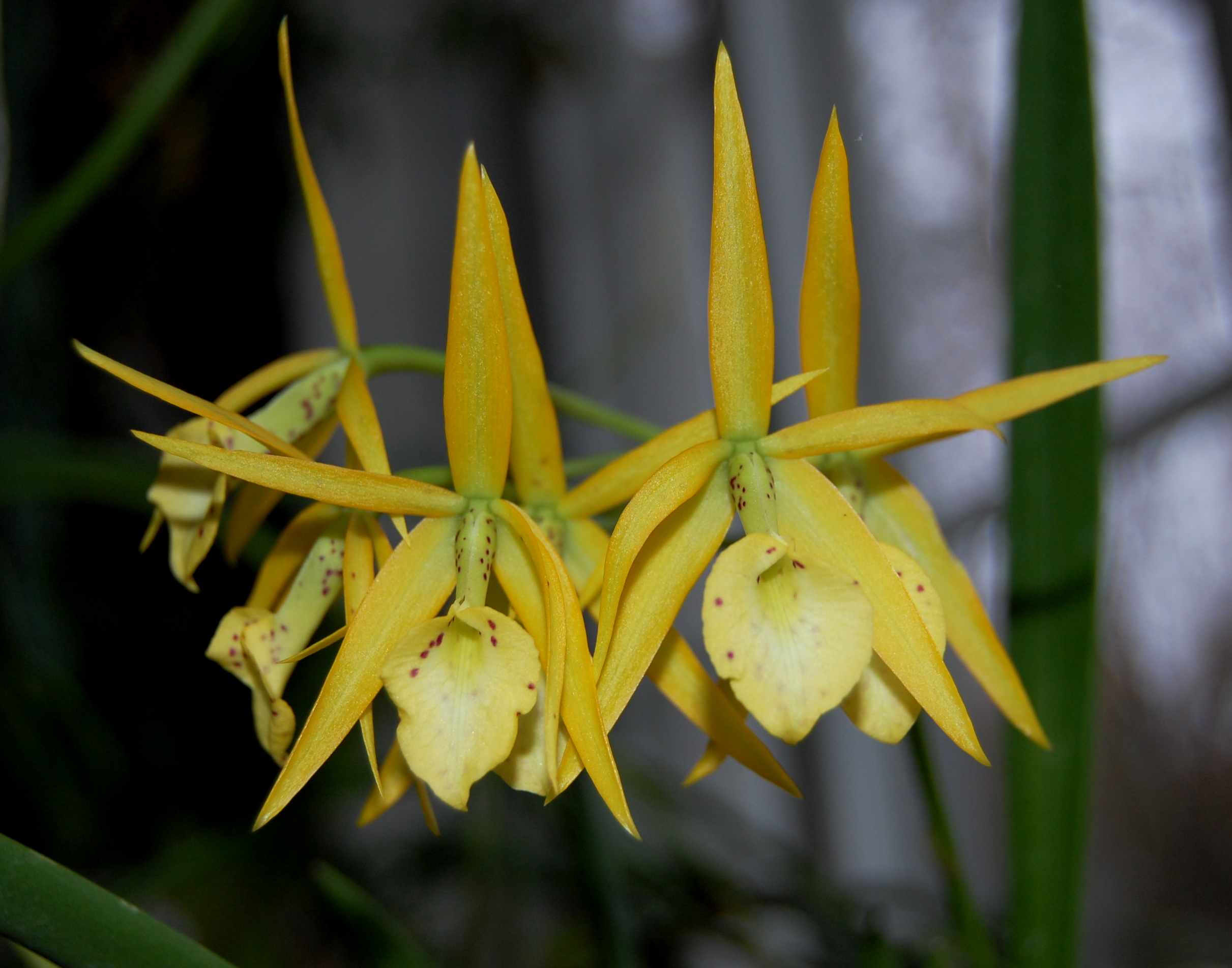 Jag vill gärna ha en ljusgul brudorkidé. Misstänker att en av de, som inte blommar, har den färgen, men vilken? Så går det, när man inte sätter etiketter. Man får skylla sig själv!!