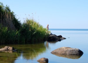 Tillbaka i stugan råder en stilla aktivitet vid vattnet. Sakta förbiglidande svanar och ljudlöst dykande tärnor. Snabbt pilande svalor över vattenytan – så lågt och så nära. Någon enstaka, vingtorkande skarv.