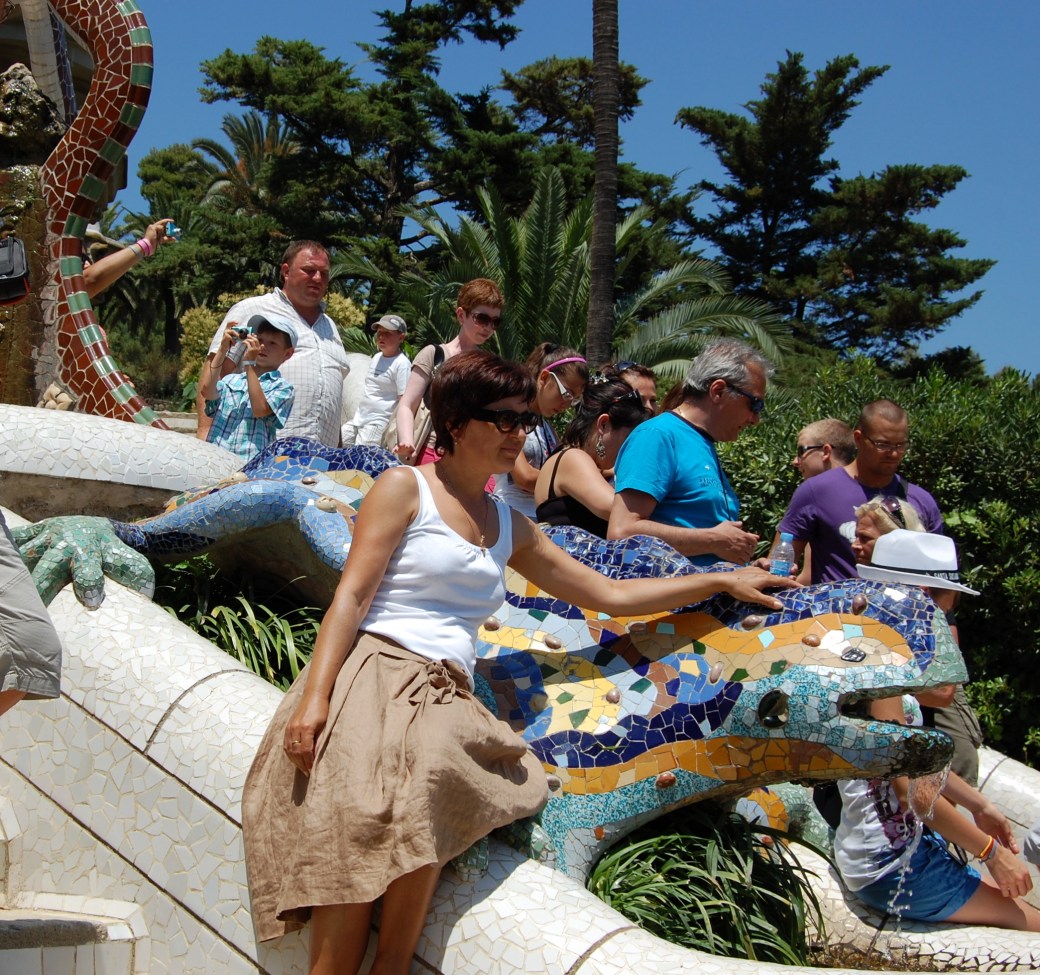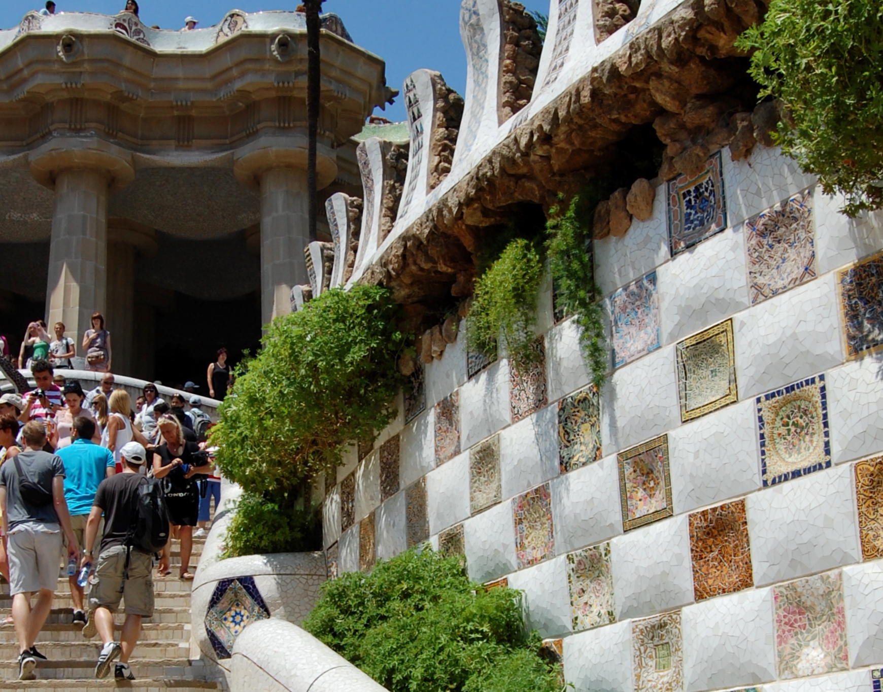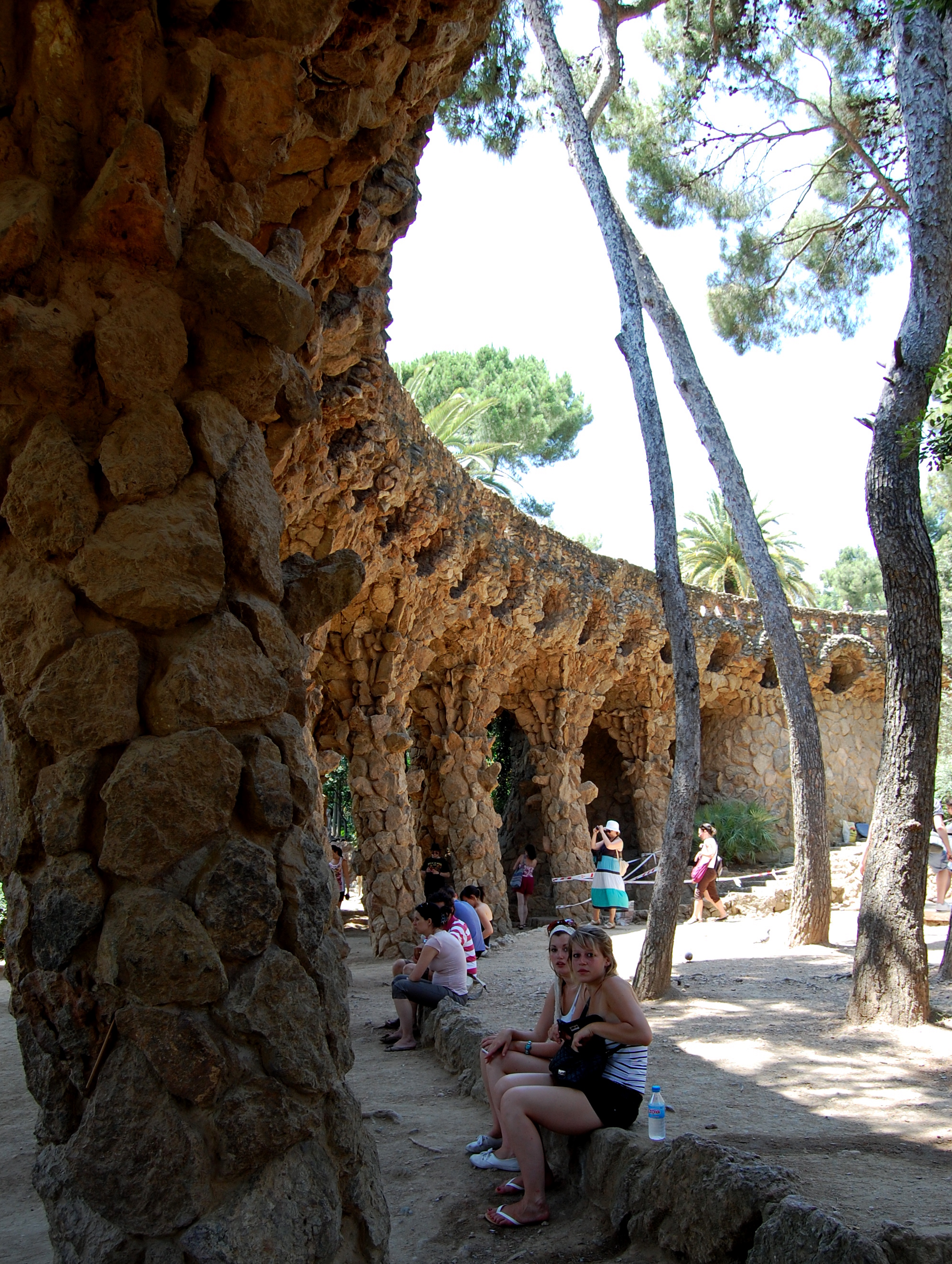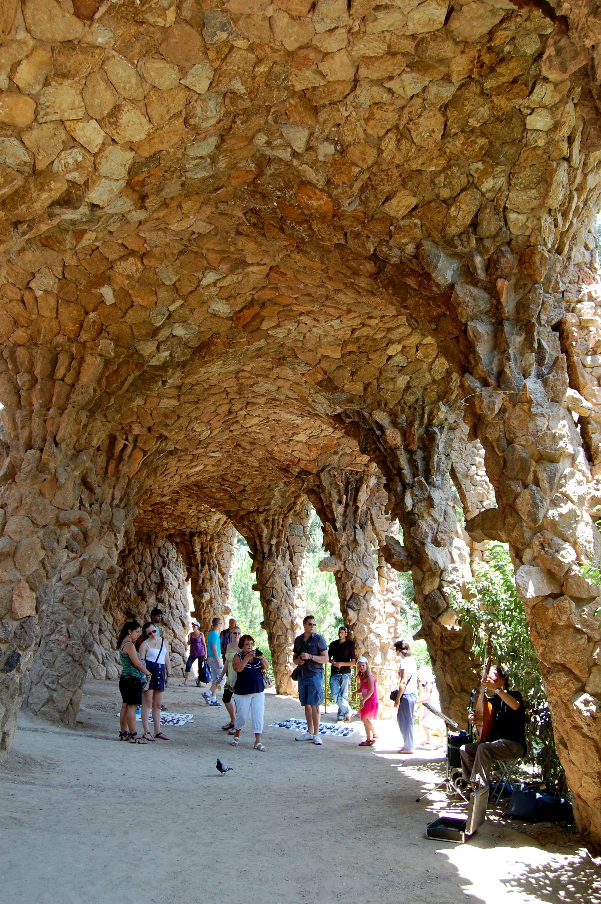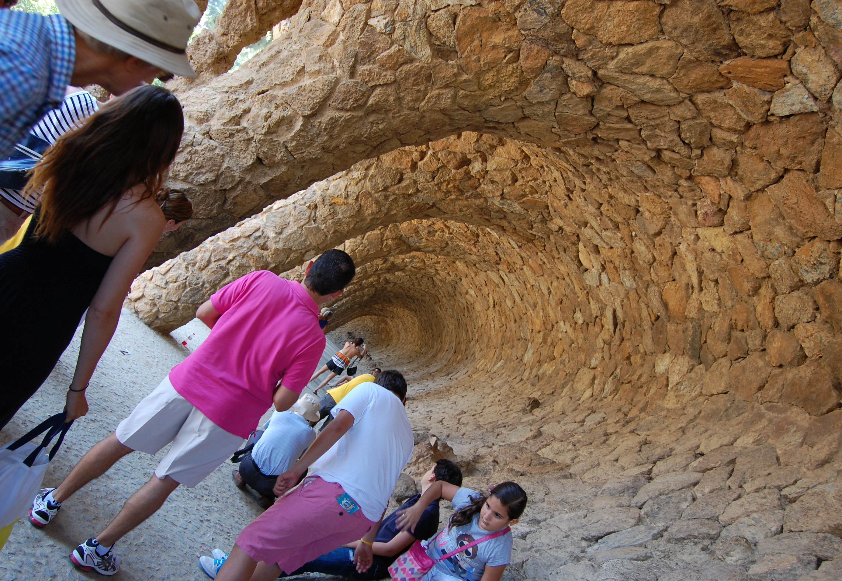 I Parc Güell byggde Gaudi det hus han kom att bo i. Det jag skulle kalla ”park” består av fantasiskapelser som talar till ditt magiska inre, valv och gångar som tagna ur en dröm – eller mardröm, och växtlighet som harmonierar och förhöjer upplevelsen. Fortsatt mycket färgsprakande kakel och brända toner.