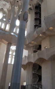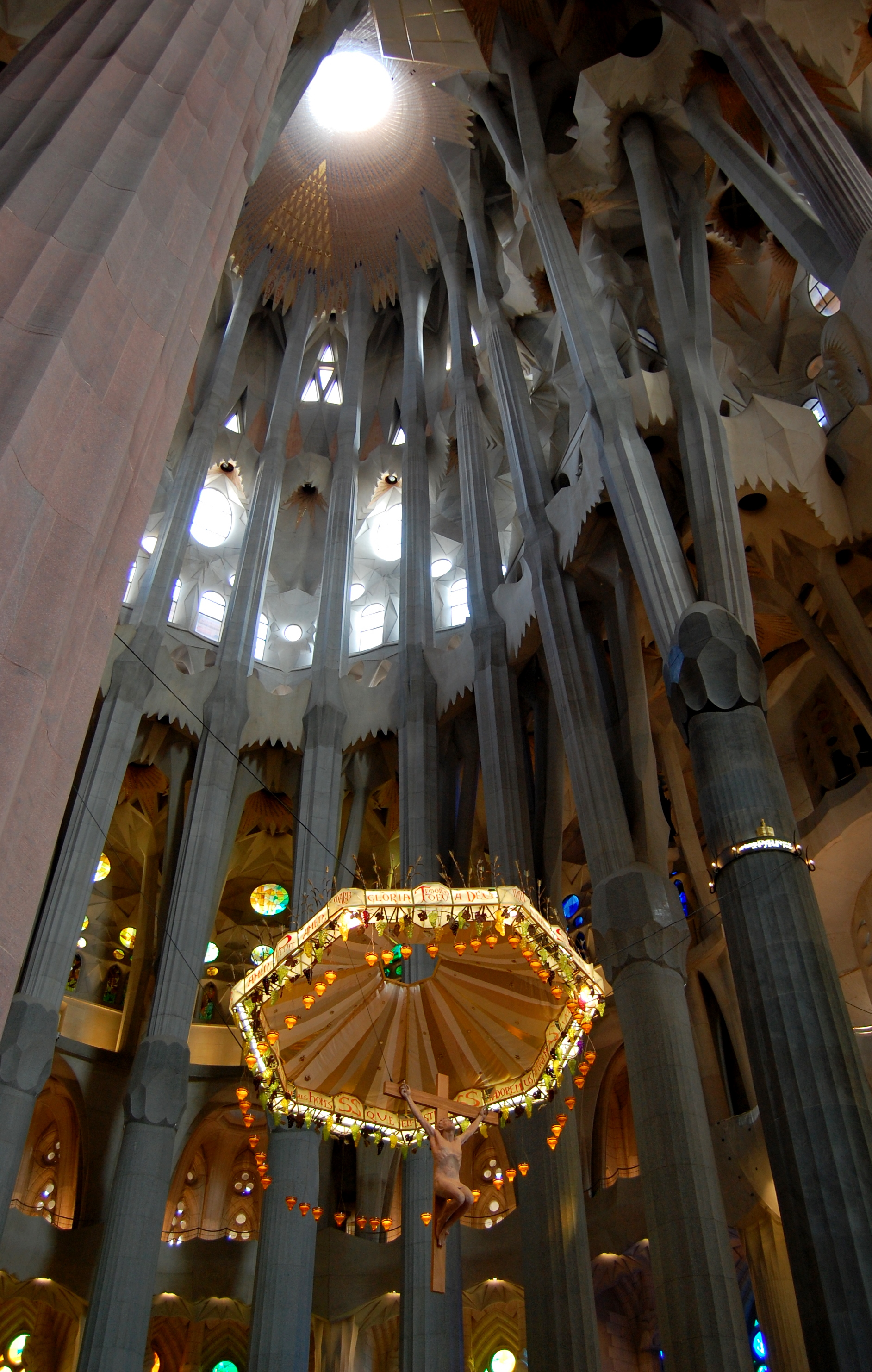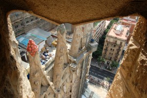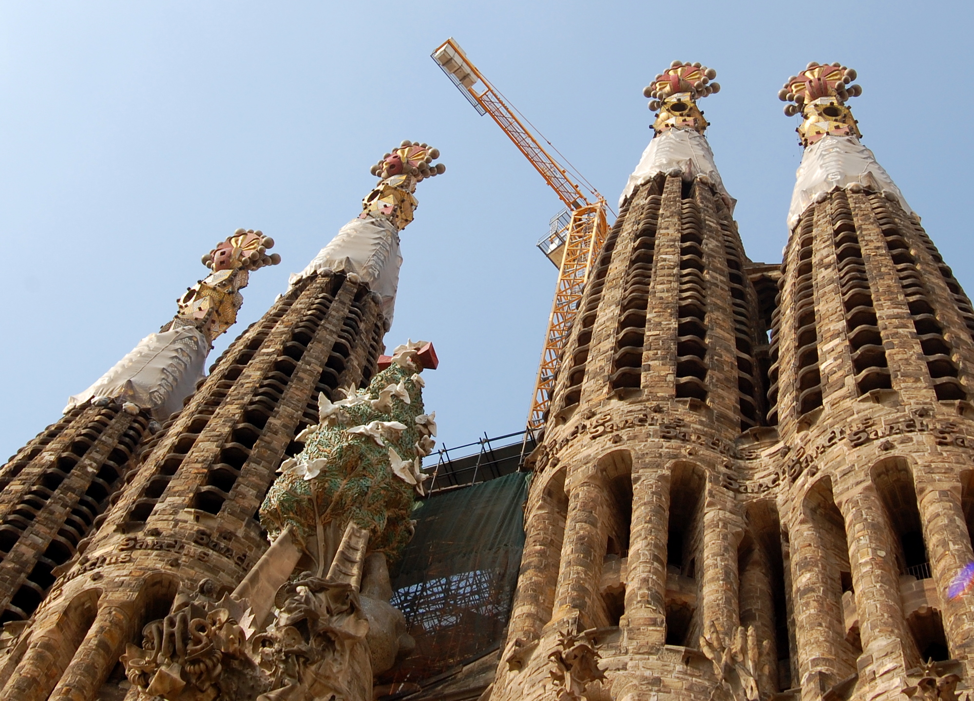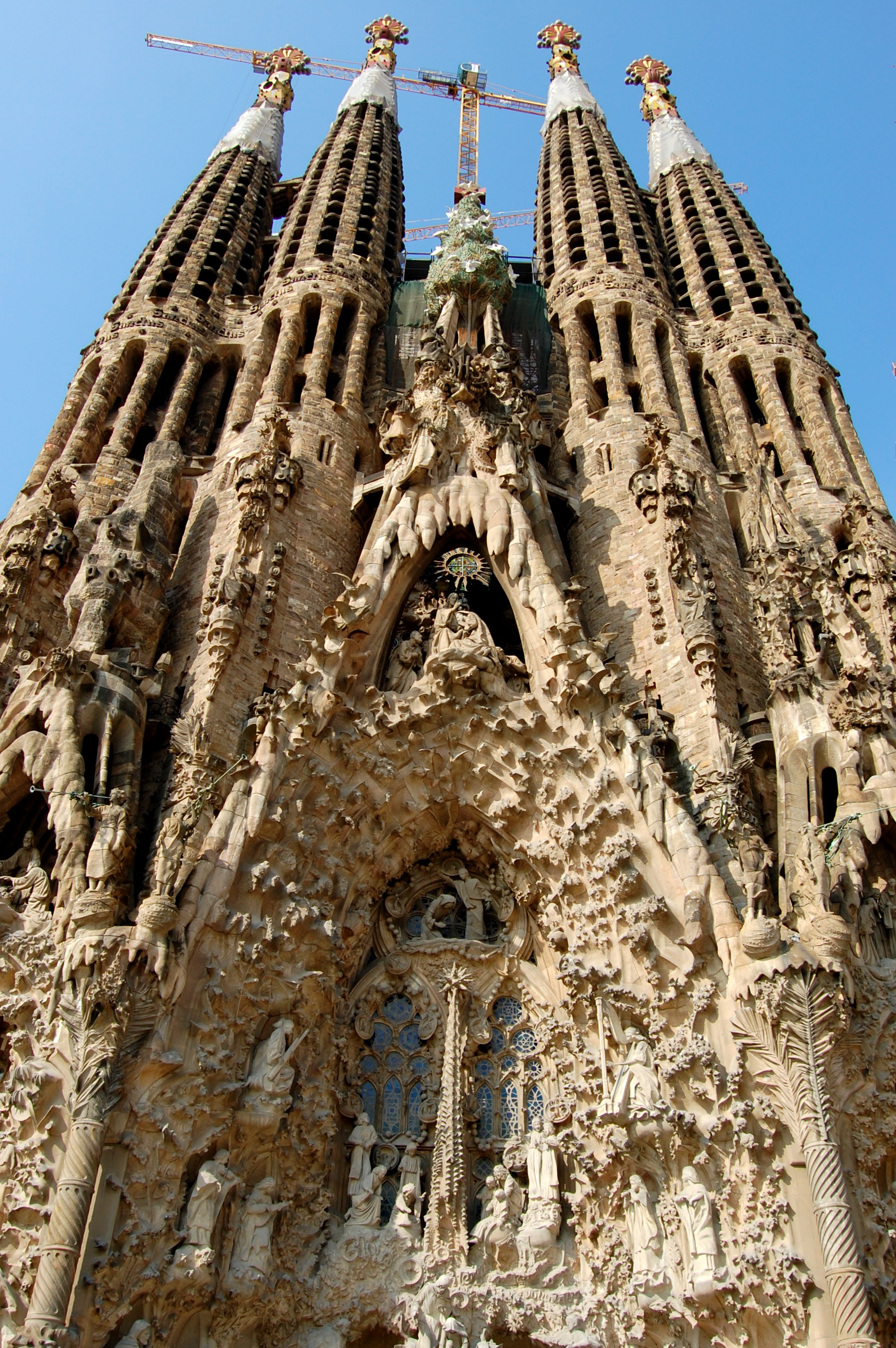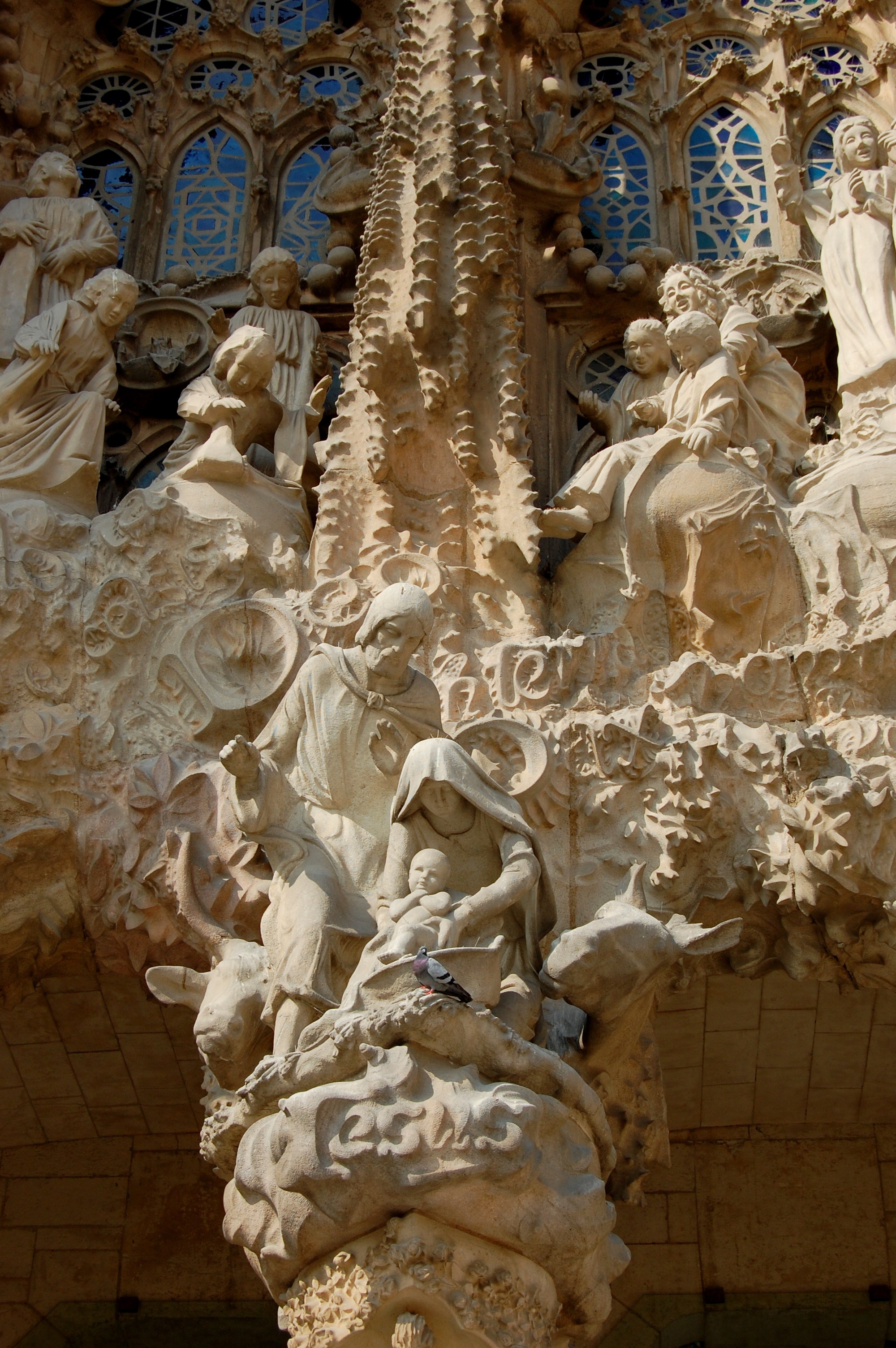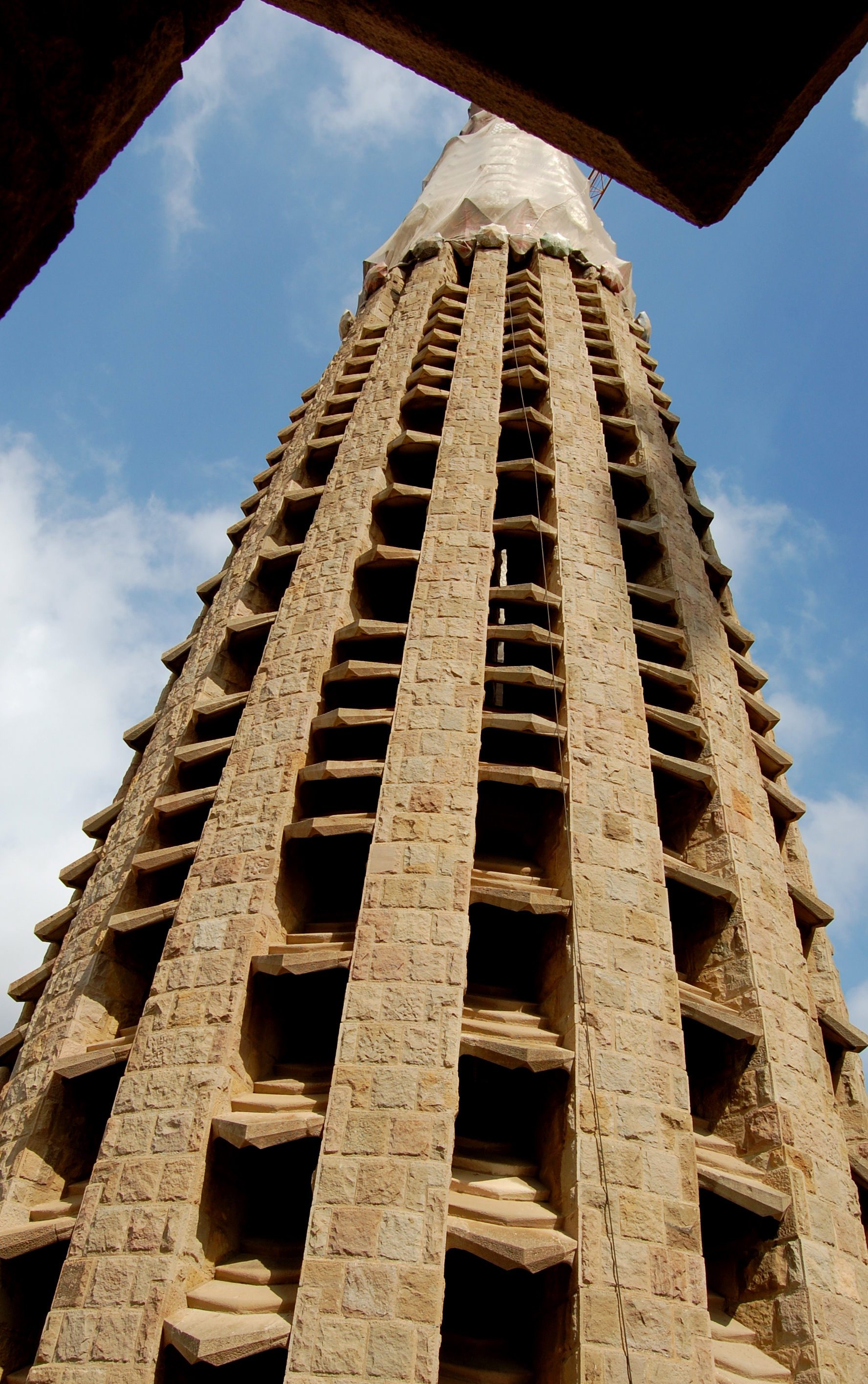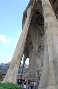 Jag föll i trans över Sagrada Família och tog över 200 bilder under min vandring utanför och inuti kyrkan, samt uppe i ett av passionsfasadens torn. Gaudís önskan var att Sagrada Família skulle vara som en bok av sten: Den ska läsas som om varje del av byggnaden representerar en biblisk händelse eller en aspekt av kristen tro. Han själv är arkitekten till Födelsefasaden – lågmäld och full av naturens under. Passionsfasaden, däremot, är mer skarpskuren och grov, och skildrar Jesu lidande och död. Arkitekten bakom heter Josep Maria Subirach, och han har fått mycket kritik för sina knotiga och ”omänskliga” figurer.