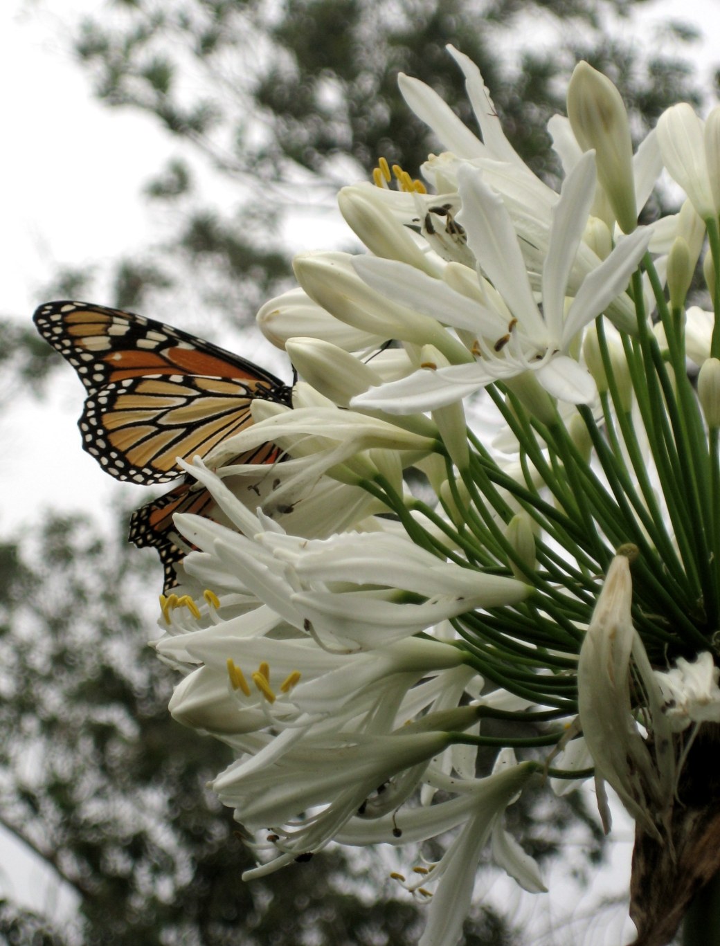 Monarkfjäril i vit Agapanthus