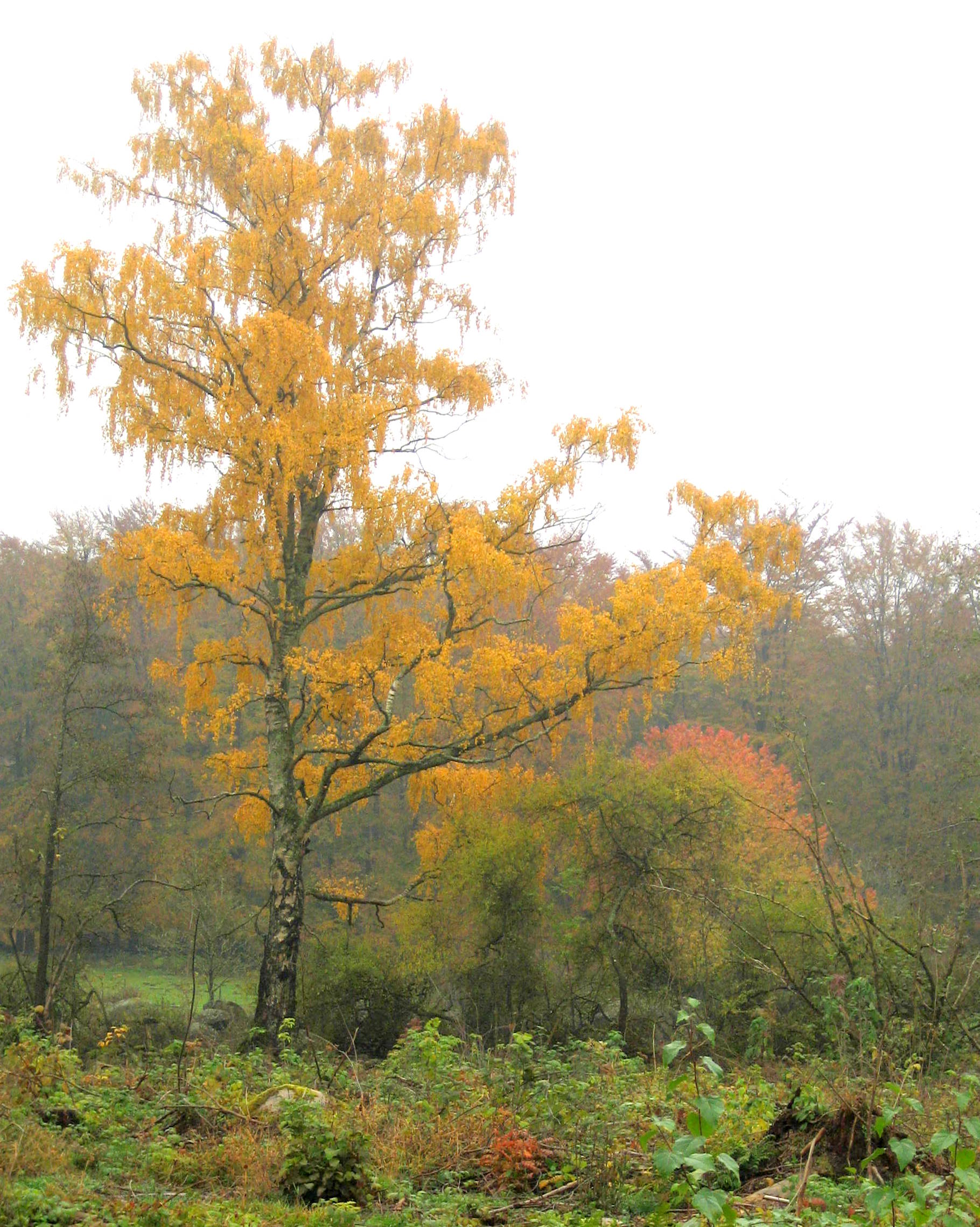 Skogen låg i skimrande gulddis hela denna dag. På väg ut med hundarna gled min gamla pocketkamera ner i fickan – som i gamla tider – för det skulle inte bli en så lång promenad. Men skogen själv ville annat. Snart infann sig en förtrollad stämning, där vandraren blev ett med disets tysta stillhet. En stillhet där blicken inte når längre än till de fuktdrypande trädstammarna, kanske en bit ut längs grenarna, och bara nästan till de knappt förnimbara löven längst upp mot himlen.