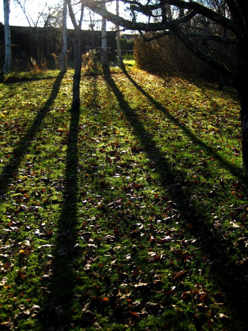 Milt och långskugga över löv i förskingringen. Några tappra tusenskönor vågar sig barhuvade upp på andra sidan syrenhäcken. I skogskanten en vingklippt vitsippa. Ur led är tiden, skrev Shakespeare. Och jag, jag längtar till ljuset och våren.