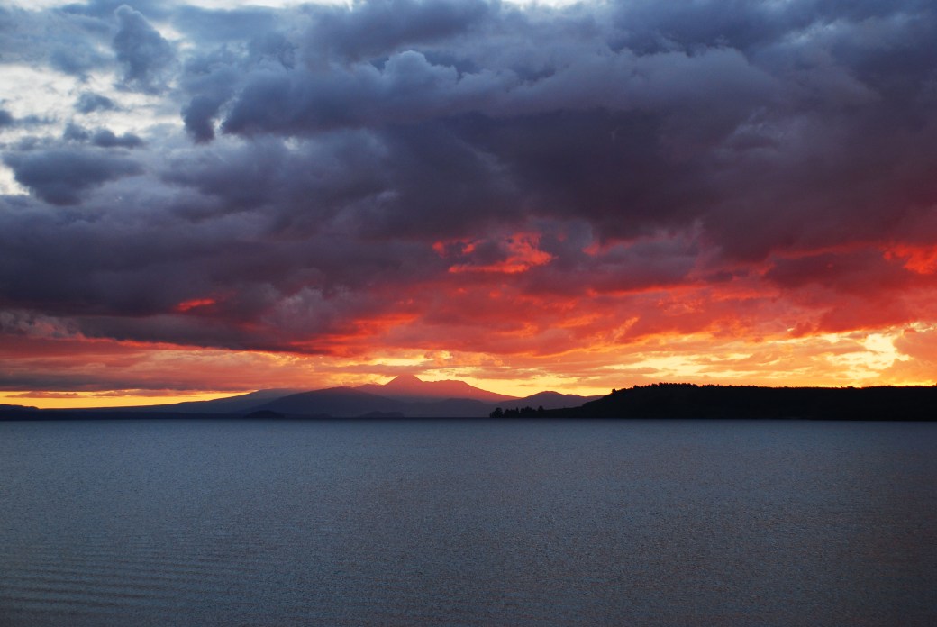 Solnedgång, Lake Taupo, Julafton 2011