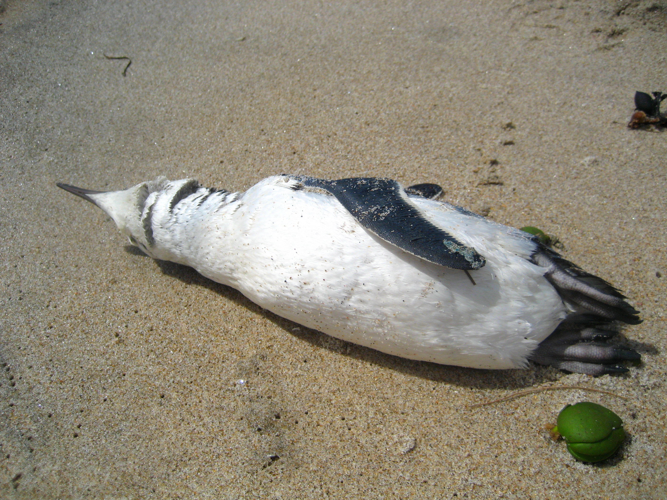 När vi vänder upp mot skogen igen hittar vi en liten blå pingvin uppspolad på stranden. I svår storm händer det att de inte klarar det – hur goda simmare de än är. En blå pingvin är inte större än kanske 30-40 centimeter. De häckar bland annat i närheten av Peter Jacksons villa i Wellingtons utkanter.