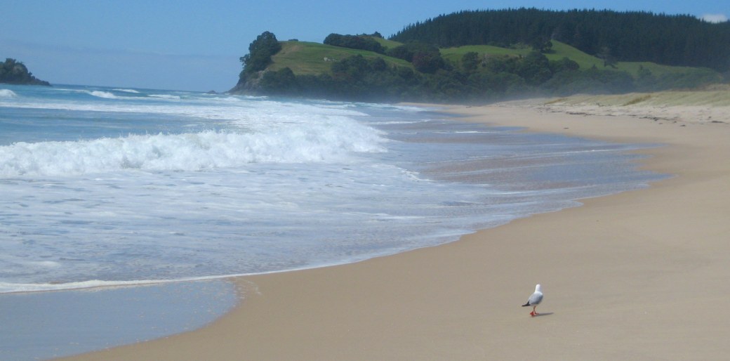 Kilometerlånga, bländvita eller vulkaniskt grå stränder. Stränder av mjuk sand, av rosa snäckskal eller av pimpsten. Stränder utan en människa. Varför? Kallt i vattnet kunde det ju inte vara. Hajar? Stilla havet, Tasmanska havet…Ganska snart förstod vi – starka underströmmar och många drunkningsolyckor gör att man inte kan gå mer än någon meter ut. Badbara stränder finns, men varningar utfärdas och flaggor hissas, så är du ute efter en ordinär sol-och-badsemester ska du inte åka till Nya Zeeland. De fantastiska vågorna gör dock vissa stränder på ostkusten till ett surfparadis.