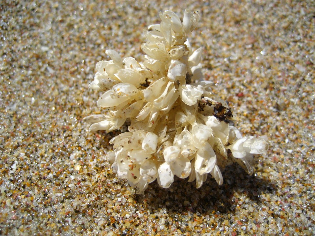 En stor del av tiden på stranden ligger jag på knä och studerar de små detaljerna. Underliga snäckformationer, uppspolade djur och växter.