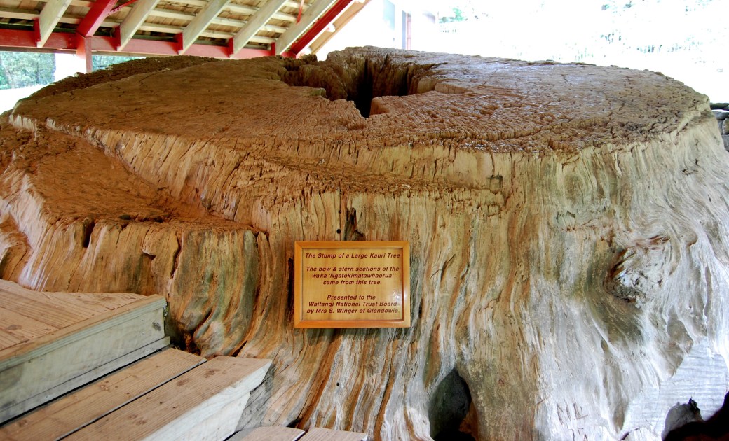 I samma båthus som skyddar den stora krigskanoten förvaras också stubben från det stora kauriträd som bistod med för och akter till kanoten. Till hela bygget använde man tre kauriträd.
