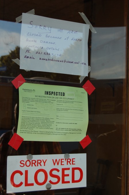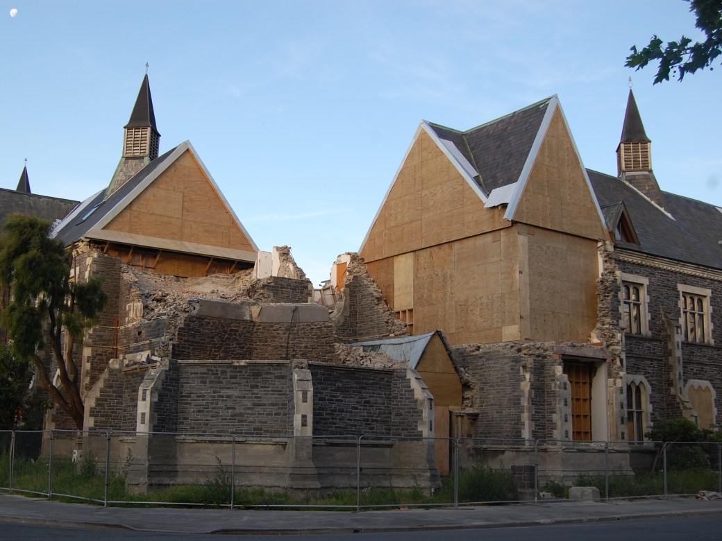 Christchurch drabbades 2011 av flera stora jordbävningar och ett flertal efterskalv skakade staden under julhelgen när vi var där. Visserligen stannade vi bara någon natt, men man ville inte gärna bo i ett flervåningshus. Vårt vandrarhem  hade annonserat att de klarat sig oskadda vid de större skalven i februari och juli, och det kändes skönt.
