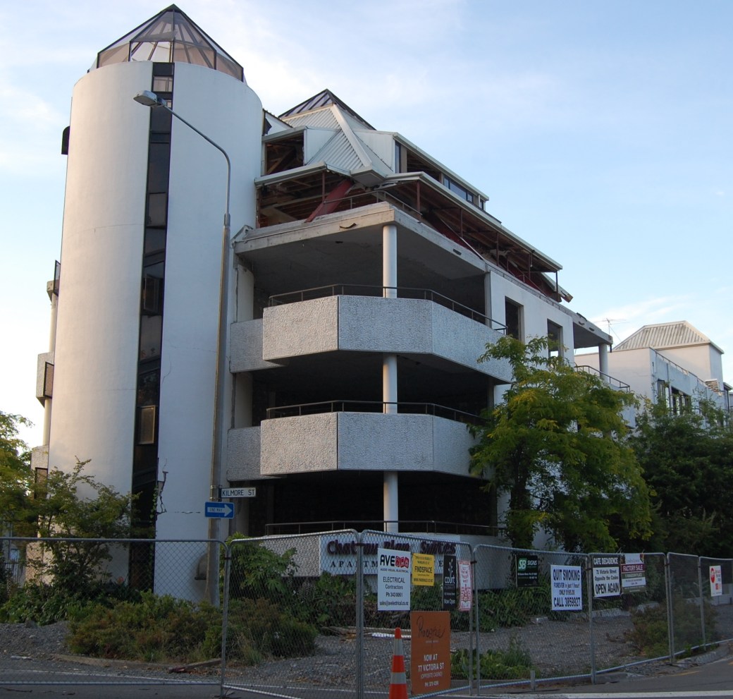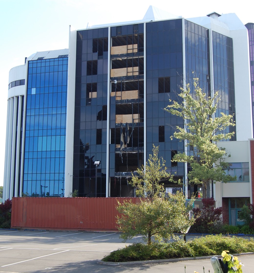 Nej, naturligtvis kunde inte heller nybyggena stå emot naturens kraftdemonstrationer. Det största skalvet som drabbade Christchurch motsvarade 6,3 på richterskalan, och glashusen regnade skärvor.