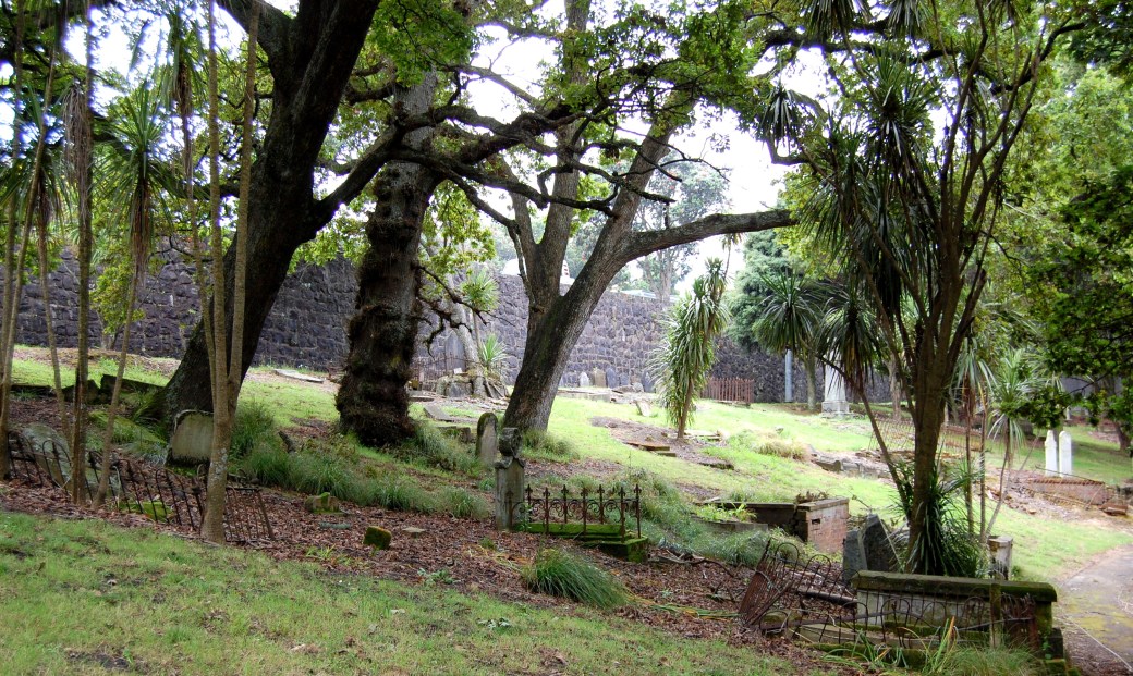 I Auckland hittade jag en annan kyrkogård som såg spännande ut. Den var belägen nedanför och under vägen vi gick på varje dag. Vår sista dag i staden tänkte vi hinna med att besöka den.