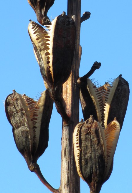 Mannen i skogsgården samlar på växter från jordens alla hörn. Han är sällan där på vintern, så jag kan inte fråga om denna pampiga fröställnings ursprung. Den är två, tre meter hög. När mannen kommer tillbaka framåt våren brukar vi språka en stund om hans senaste resor och fynd. Sist vi talades vid hade han samlat alpina växter i Kina och i Anderna. Hans trädgård är en oas och ett paradis för alla växtintresserade, och besök ordnas för entusiaster, som kommer i bil från hela landet. Men, hans gärning för naturen häruppe pågår ständigt. Han röjer och vårdar sig om de sällsynta växter han hittar. När nattviolen höll på att försvinna på grund av sprättande kreatur, så utverkade han av bonden att få stängsla av området. Han röjde fram och har lyckats få tibasten att leva och frodas igen – tills några tokiga björnbärsröjare jämnade nästan alla buskar med marken.