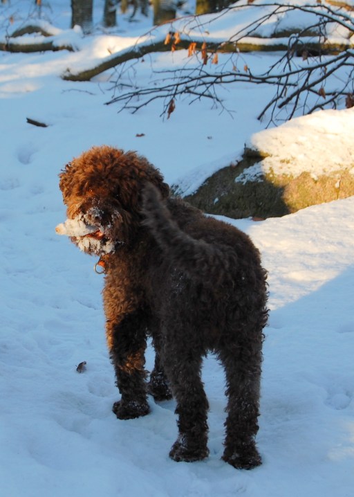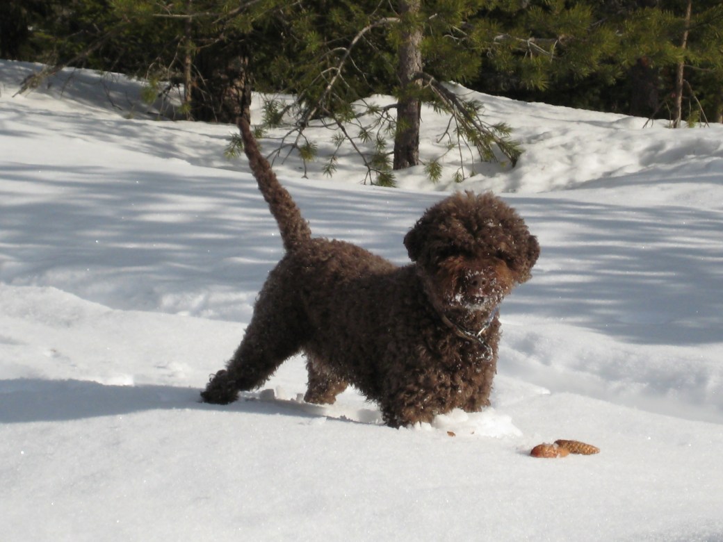 Den skulle vara byggd av kottar naturligtvis, och hälften skulle bestå av en igloo. Så skulle det i varje rum finnas en slunga, en sån där som spottar bollar – fast kottar (snöbollar i igloodelen förstås) – så jag kan springa och söka och hämta hela tiden. Intervall. ”Snacka om motor”, brukar matte säga. Mitt riktiga namn är också, passande nog, Bonebreakers Ferrari!