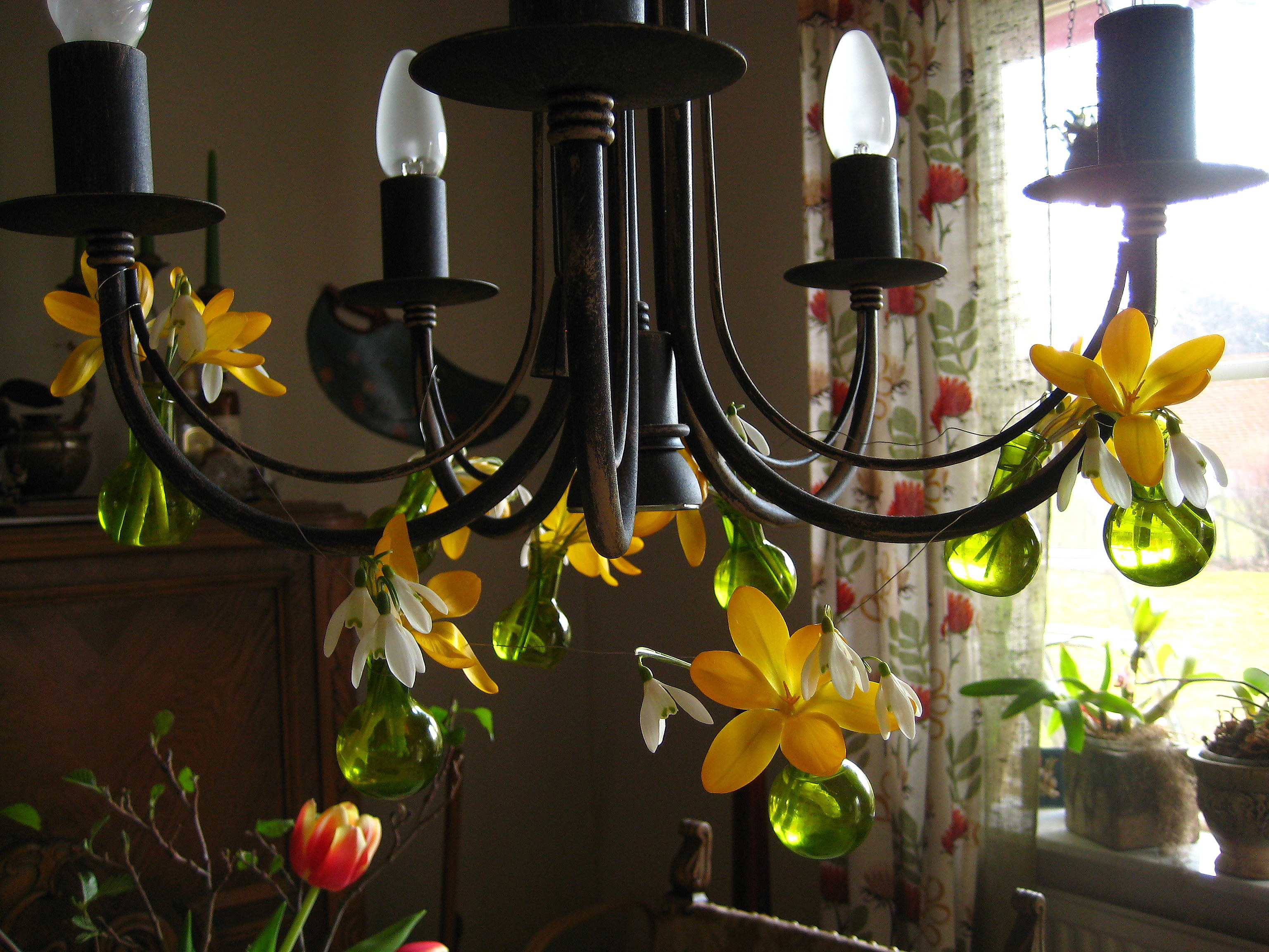 En ensam tulpan tittar upp mot fönstret – och det får den så gärna göra. Alla vänder vi oss mot ljuset och särskilt tydligt gör vi det här i Norden.