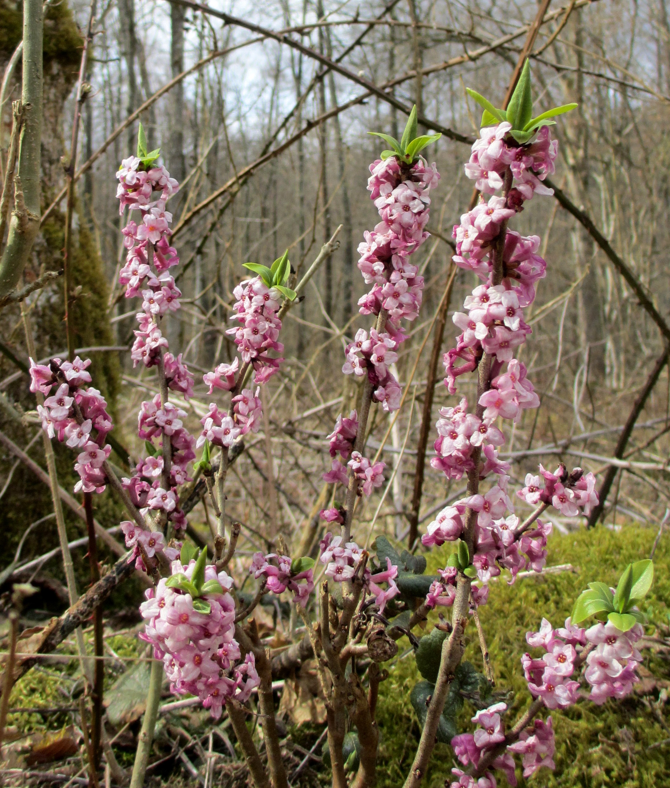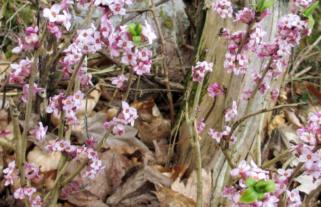 På skogsängarna i min  skog blommar nu äntligen tibasten. En härlig favorit med sagolik doft. För något år sedan skulle det röjas björnbär och sly här, och då åkte alla tibastbuskar med i svepet. Åh, så vi sörjde, den lille mannen och jag. För just den svängen, utom en särskild glänta, tar jag alltid i mars- april för att njuta av både färg och doft.