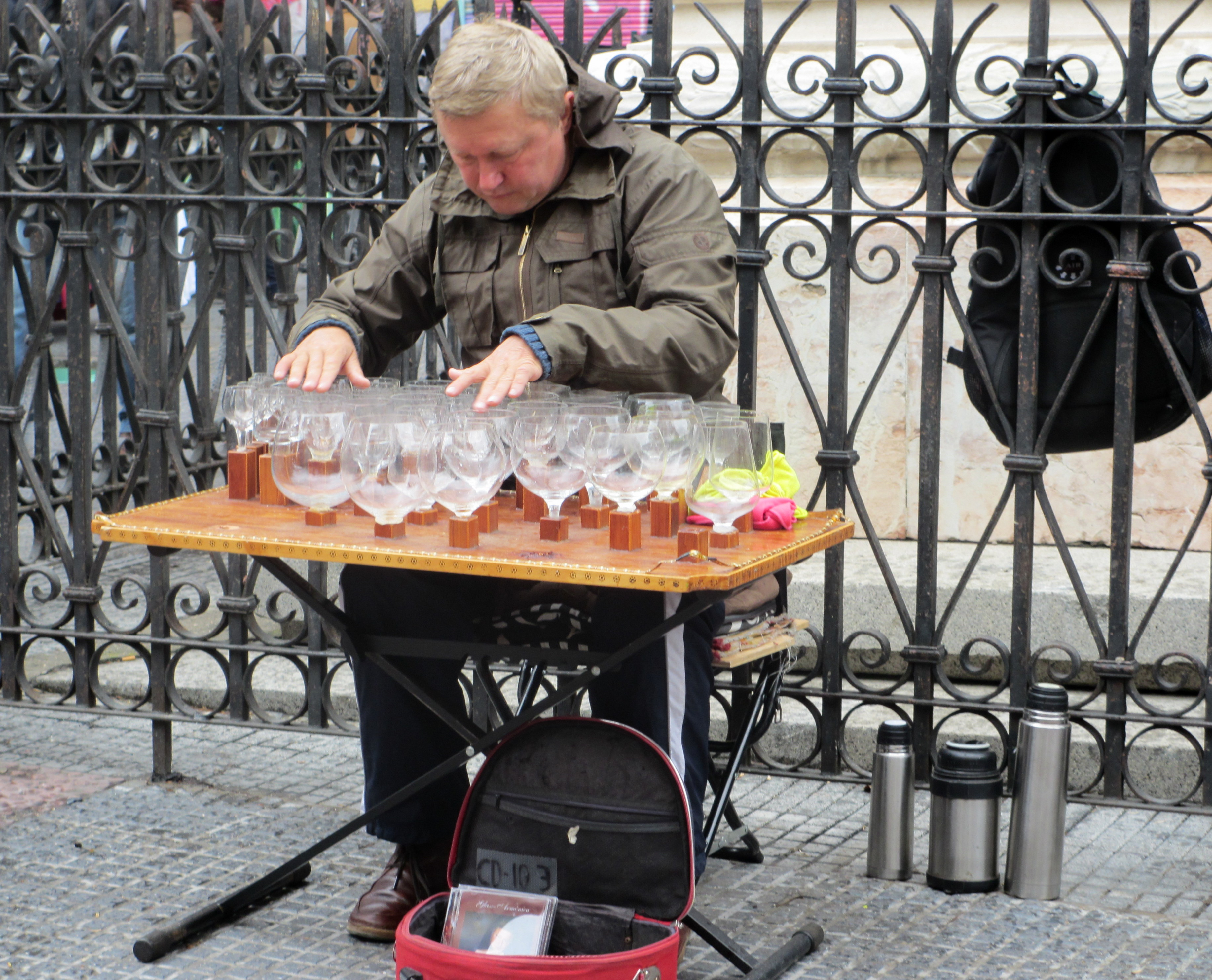 Ingen marknad utan musik förstås! Allt från positivhalare till vattenglasspelare fanns här och vi stod och lyssnade på var och en ett tag. Så skicklig var mannen ovan, och tänk bara vilken tid det måste ta att stämma allt rätt! Ett litet aber var att det nu hade så lätt att regna…