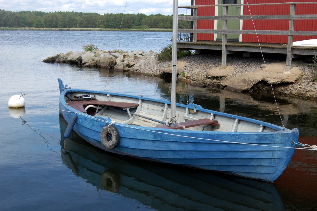 Framme vid hamnen samsas båtar, svalor och blommor i harmoni. Här trivs mjölkört – eller ”rävarumpor” på ren skånska, fläder och blåeld tillsammans. Jag tror mjölkörten är en av de växter som har flest namn… Mjölke, Kropp, Rallarros, Brudfackla, och så vidare.