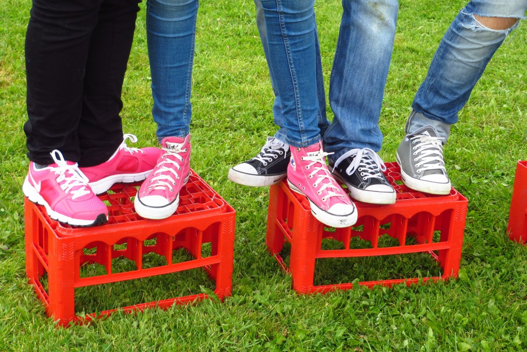 Introduktionsdagar – ja! Treor och tvåor hos oss ordnar lära känna- och trygghetslekar för ettorna. Lekar och aktiviteter håller på i två dagar och är inte alldeles bekymmersfria…Själv var jag ingen hängiven fan av ”insparkar”, men vi lärare ska idag godkänna leken innan den får användas. Det får inte handla om förnedring, vilket det många gånger rörde sig om förr i världen. Idag är lekarna vänligare och mera uppbyggeliga. Man satsar på samarbete på väg mot målet.