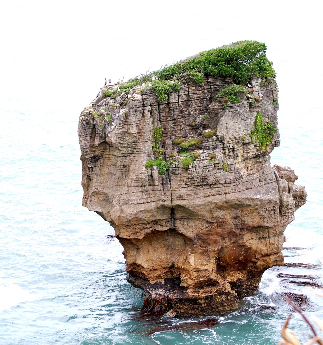 Solitary island of The Pancake cliffs off the west coast of New Zeeland, South Island.