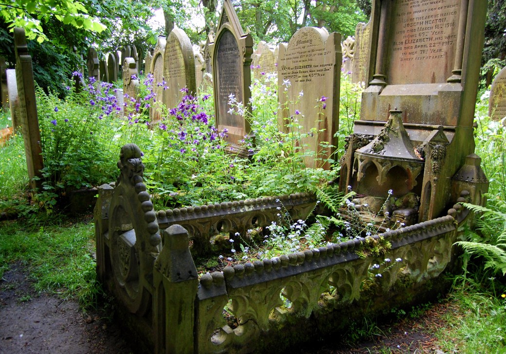 Graveyard where members of the Bronte family are buried. Yorkshire, England.