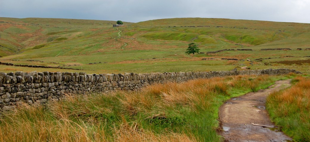 The long, winding road up to Top Withens, where the remains of the farm said to have inspired Emily Bronte´s ” Wuthering Heights” still stand. Yorkshire, England.
