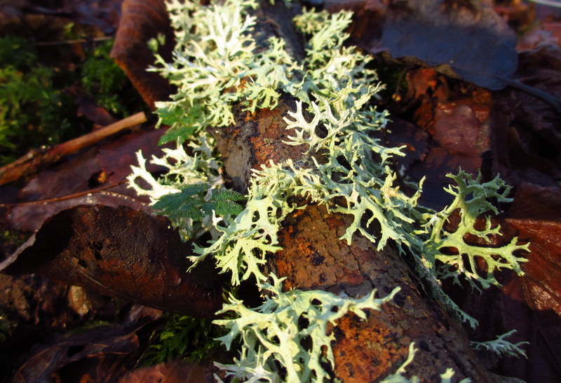 This broken twig, and its bright lichen, caught my eye inside the forest. Hit by a tiny ray,  it lay glowing on the dark ground.