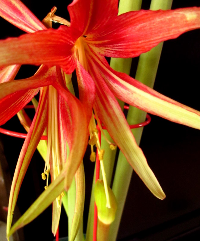 This years’ fiery Christmas flower in my home is a colourful Hippeastrum called ”La Paz”.