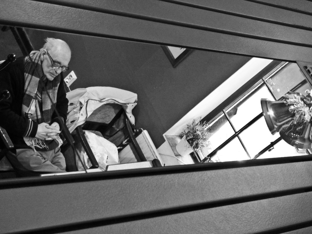 På caféet fanns en spegel i taket. Jag har vänt bilden 180 grader.