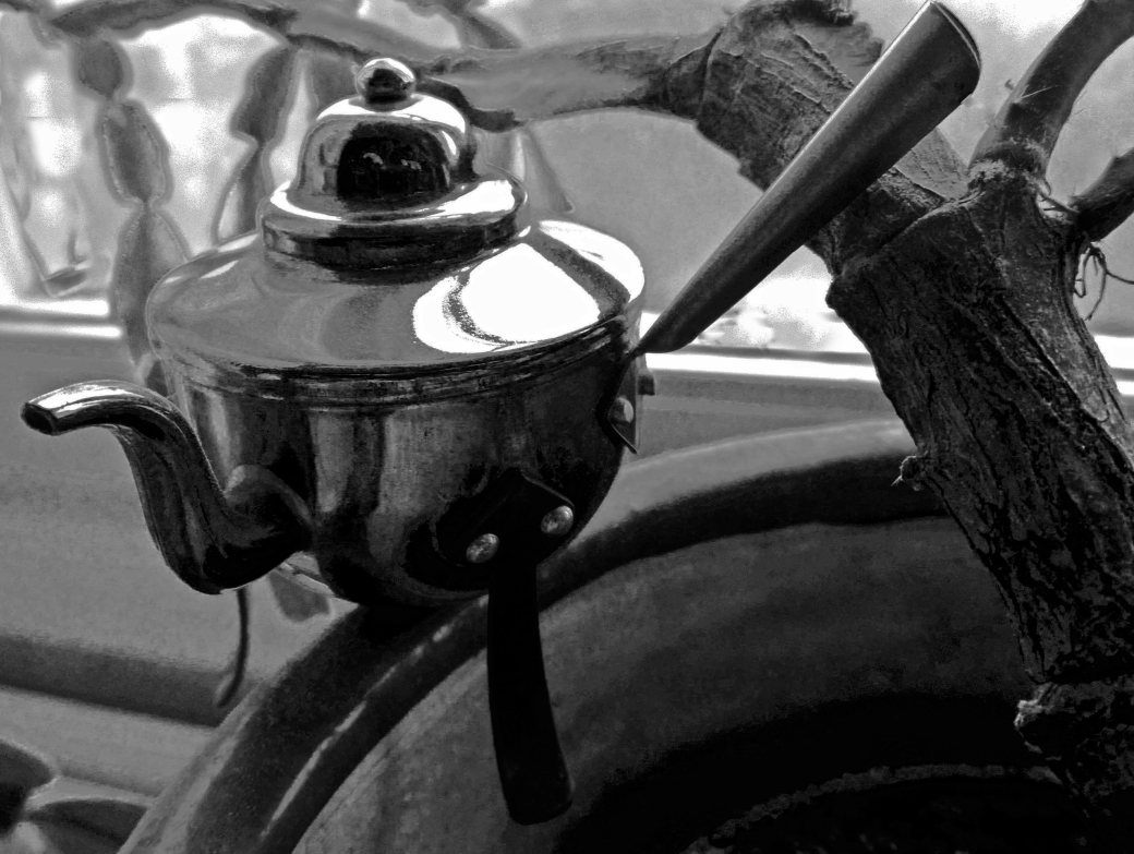 When my daughter was a little child, she loved everything tiny. From her grandmother she got this tiny copper coffee pot – now sitting in a cactus in her room.