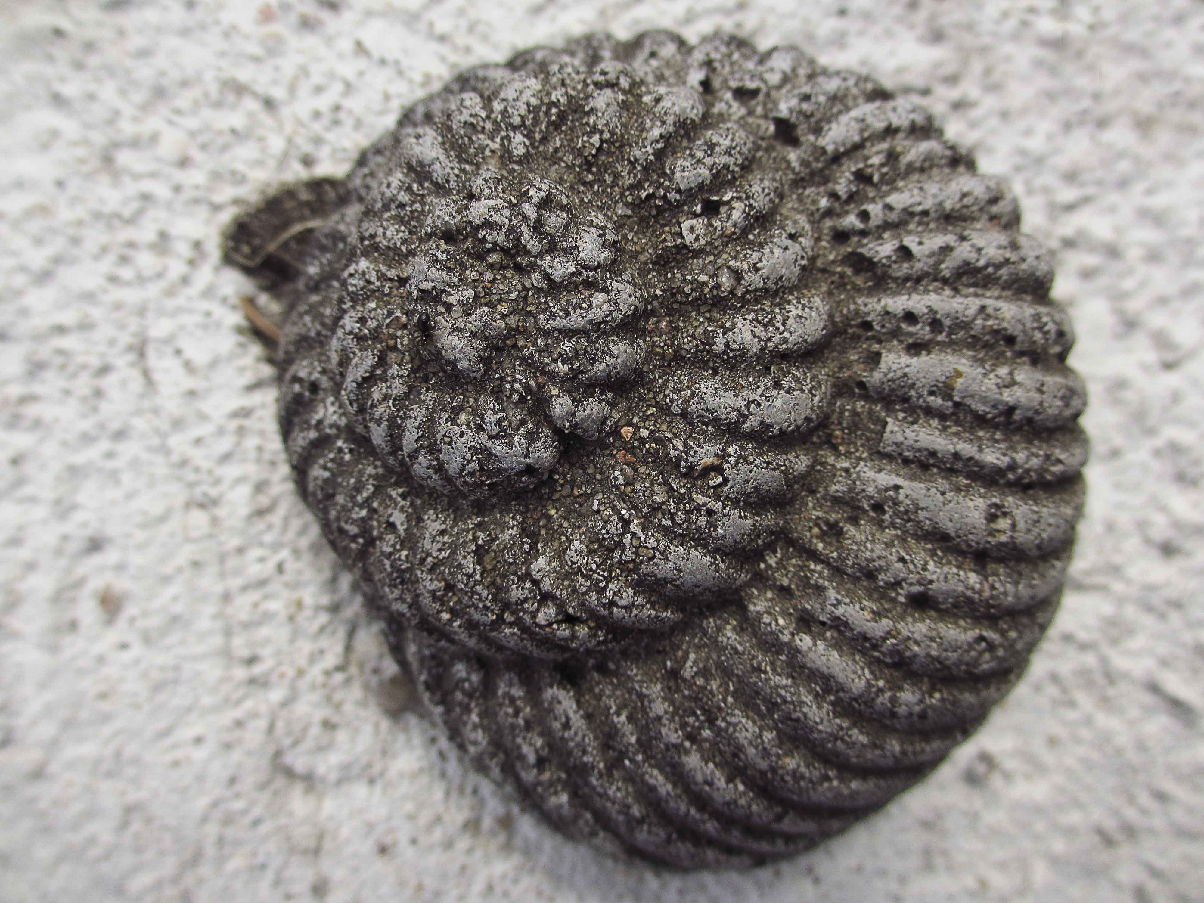 Det är en betongsnäcka som ligger på mitt uppochnervända vattenbad!
