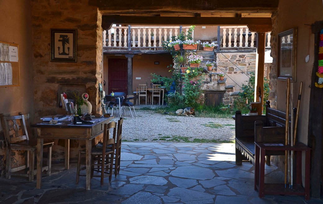 On our way to Astorga and the great cathedral, we stayed at this pilgrim albergue – our first one. At the entrance we were welcomed by Evilio, and immediately he set the mood: Contemplative and calm – Total Harmony.