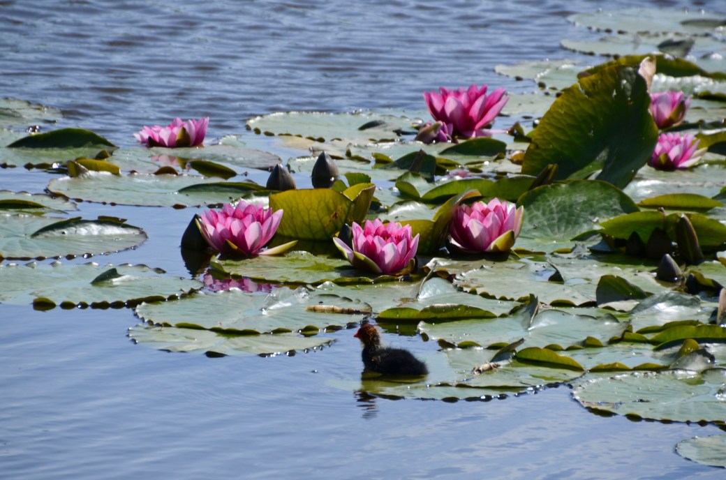 Beautiful water lilies, A-C…and is that a little coot amongst them?