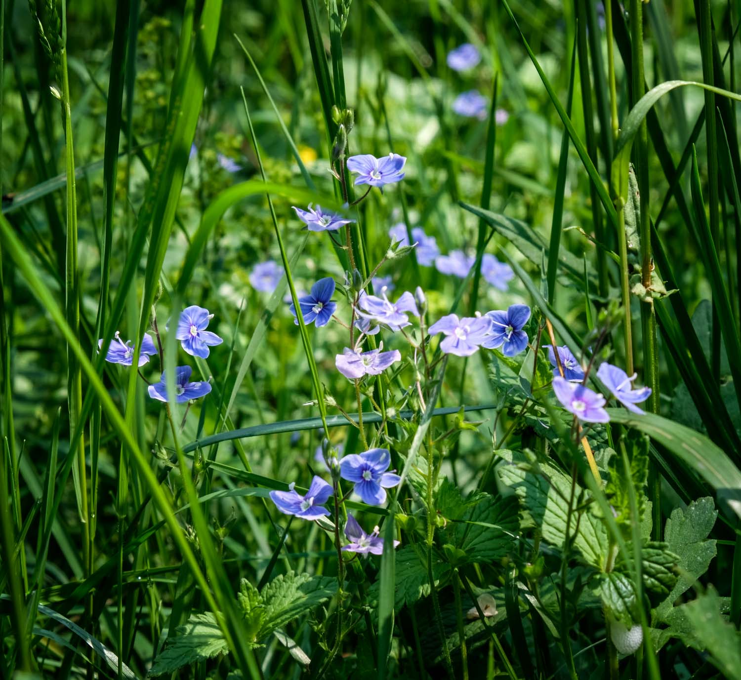…or down at the tiny Veronicas hiding beside me in the slender grass – ”Cat’s eyes” – in Sweden we call them ”Grandmother’s Glasses”