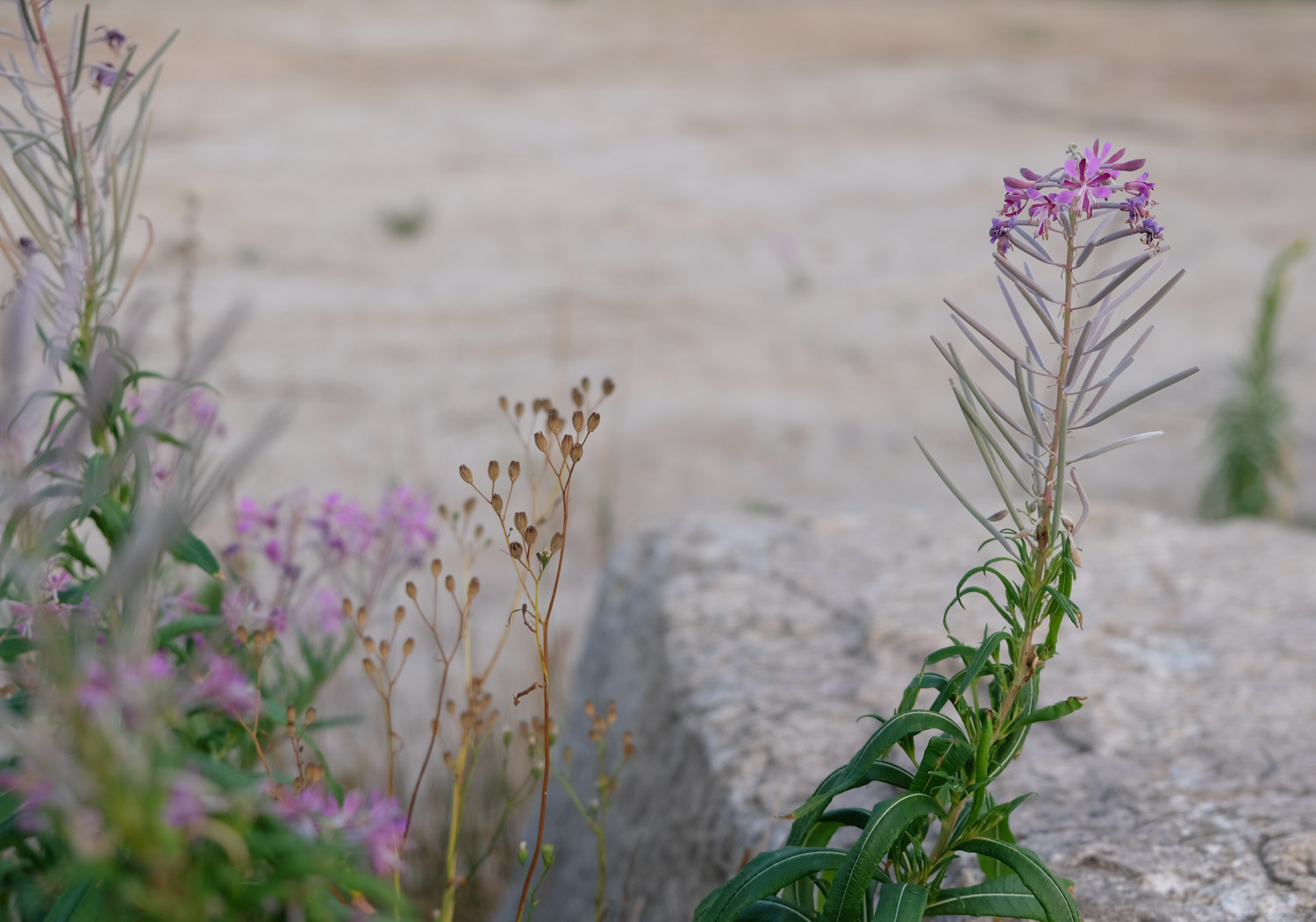 Jag tror du har rätt – romantisk stämning i bilden! Det var ett så fantastiskt ljus med den magra marken bakom och stenarna. Grått och lila/cerise går väl tillsammans.