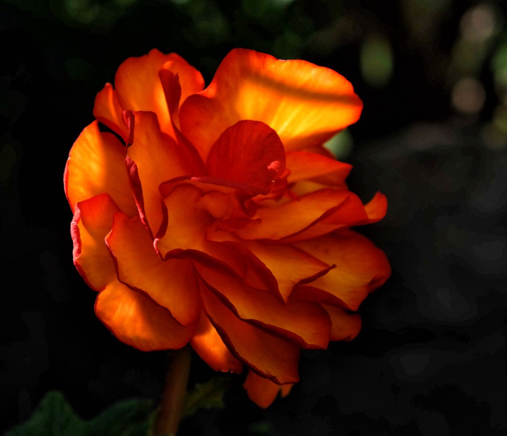 A mouse! Did it nibble the begonia for food? I love the fiery, sunset colour of this begonia.