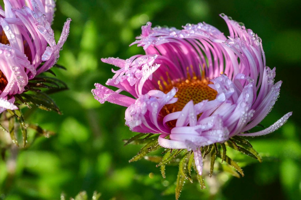 Asters unfurling in the warming sun