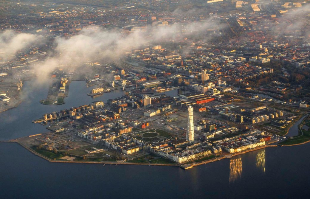Lastly, my nearest big city in Sweden, Malmoe, with its 312000 inhabitants. A windy city by the sea, just opposite Copenhagen on the other side of the water. Shot through the plane window flying in with a beautiful sunset. The only skyscraper you will see here is  Turning Torso – by the architect Santiago Calatrava.
