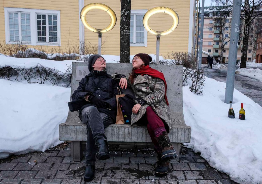 Meeting lovely people is another great joy. Umeå seems to be the place where many of them live… – this lady looked really sweet, and had left her home knitted mittens on top of the bag. It’s warm today, she said, – last week we had – 25 C.