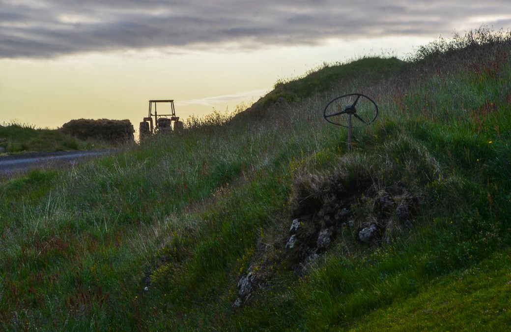 Finally, this window view, in the middle of the night, from Helgafell (Holy mountain). I wonder…were there really two tractors out there – or was I only dreaming?
