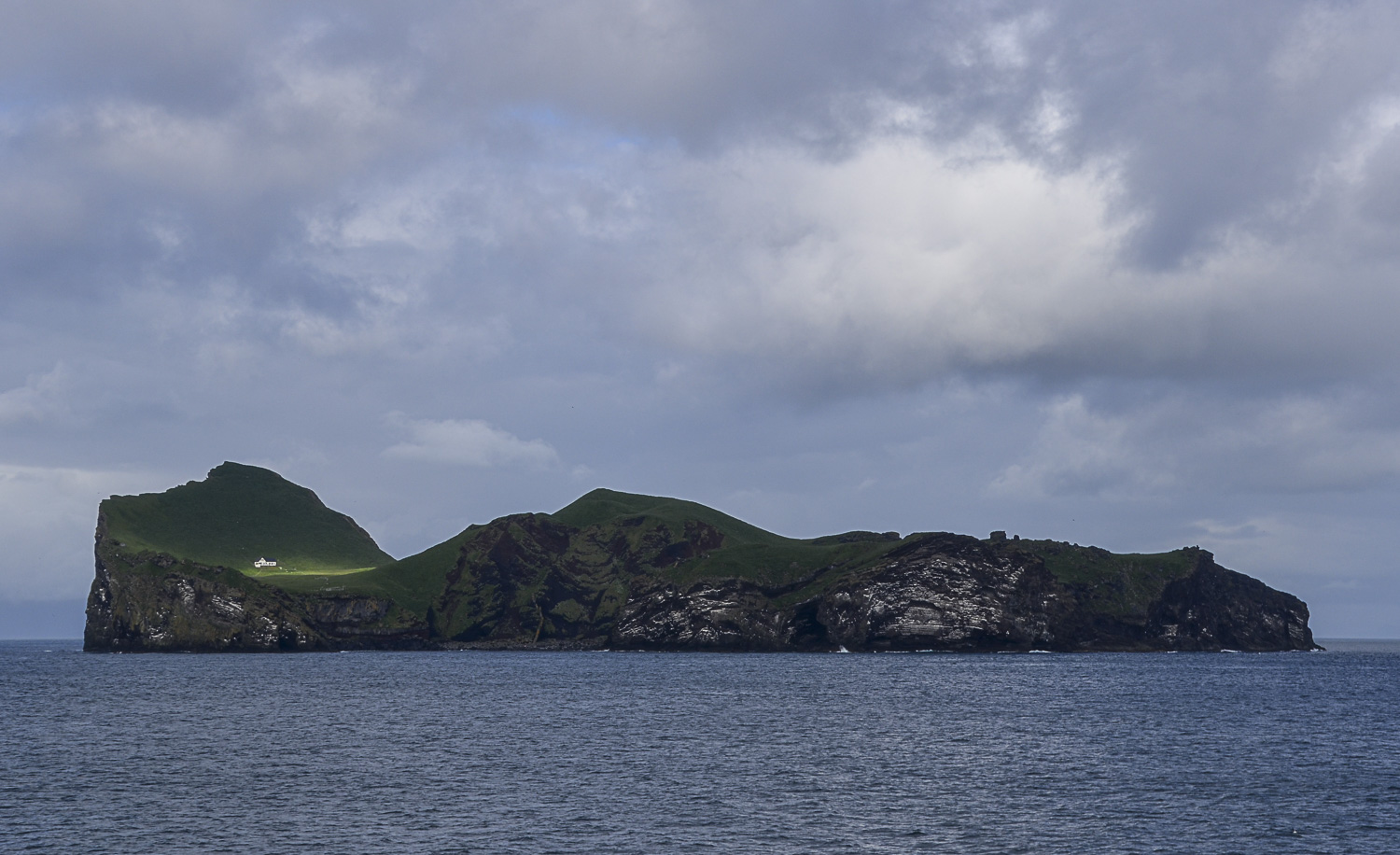 If you go to the dictionary, it says ”having a magical or pleasantly unreal quality; dreamlike.” On our way over the sea to Vestmannaeyar, this huge cliff emerged out of the fog and rain, when suddenly a ray of sun burst out through the heavy clouds and revealed a lonely farm house nesting in that emerald green. Who would have imagined? And who would be able – and want – to live out there? An enigmatic dream unveiled.