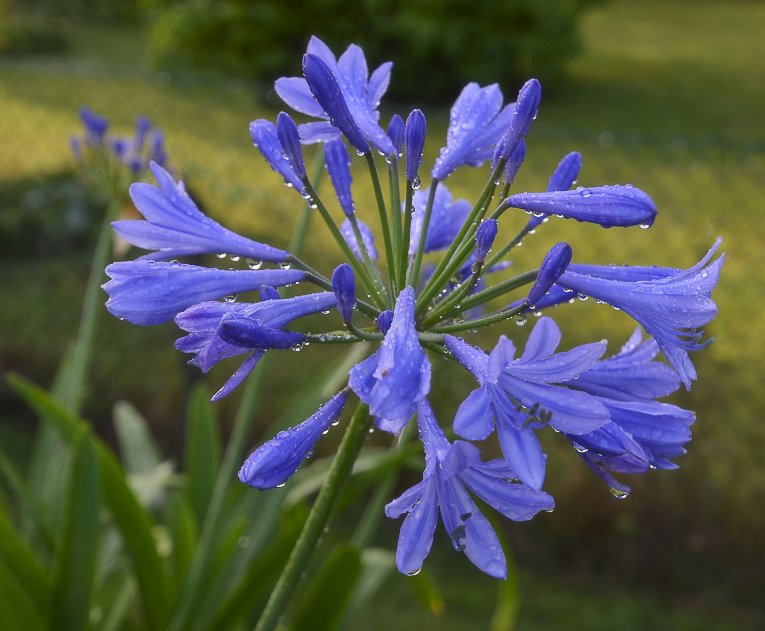Love how the agapanthus is bejewelled with water drops.