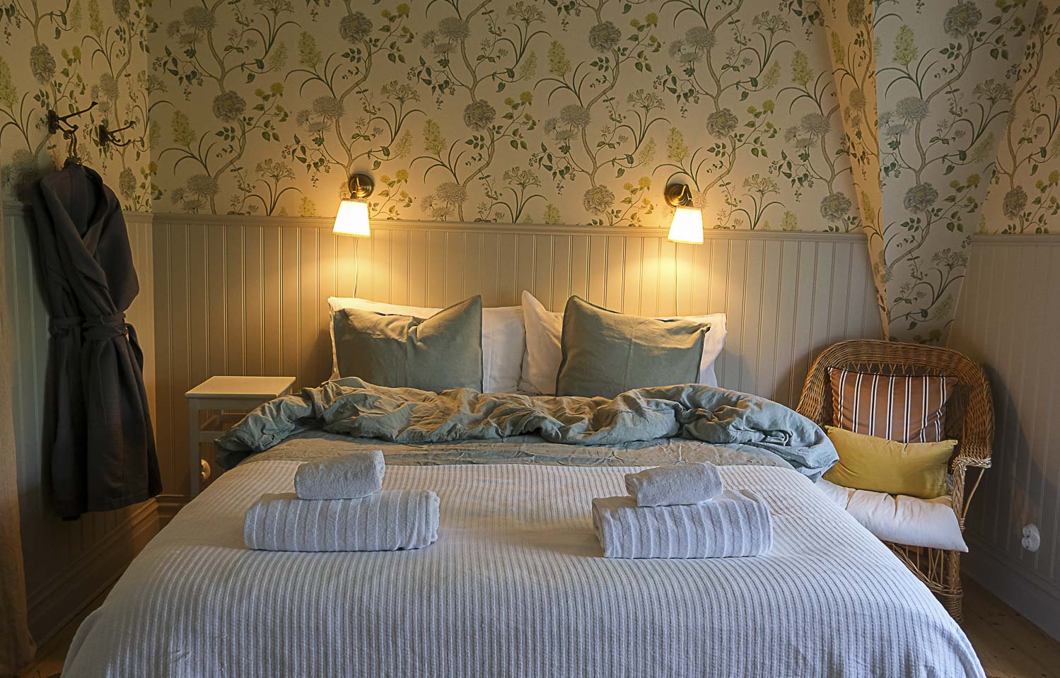 We stayed in a grand old house, where the upper apartment with four rooms had been converted into a B&B. Our lovely hostess told us she had finally left her career in Stockholm and started a B&B – an old dream of hers. Originally thought for Spain or Italy, but they had settled for the southern part of Sweden instead. (At least it was in the south…she laughed.)