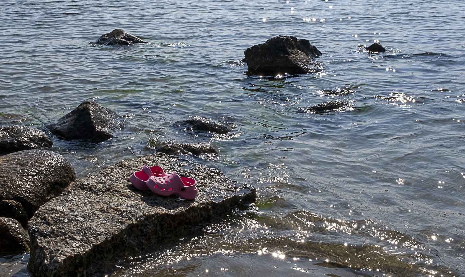 Finally back on the beach again. First a rainy blue day…shoes abandoned, and then our new little family sweetie, barefoot, grandfather carrying her shoes. She did not wear them for the rest of that day…left them waiting all alone on a stone. I bet they were missing her tiny, soft toes…
