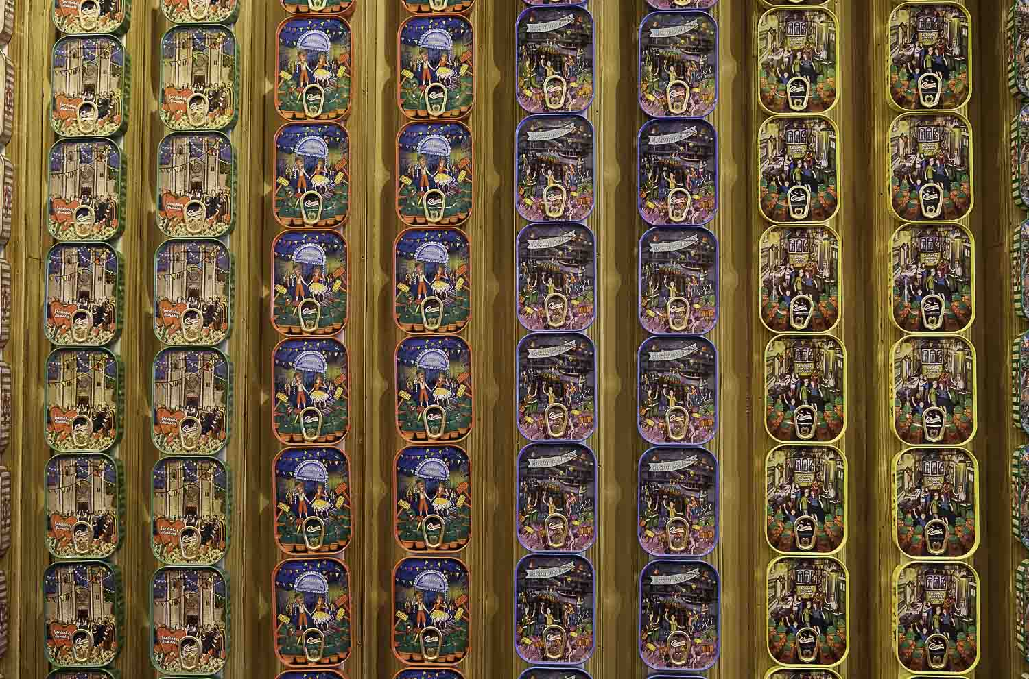 Bacalhau! A national dish in Portugal. We got a first taste of it here, with a glass of port of course…The neighbour was a spectacular sardine shop. You could even buy a box of sardines with your year of birth on it – luckily the fish was not the same age… I bought a box for my father, who turned 89 two weeks later.