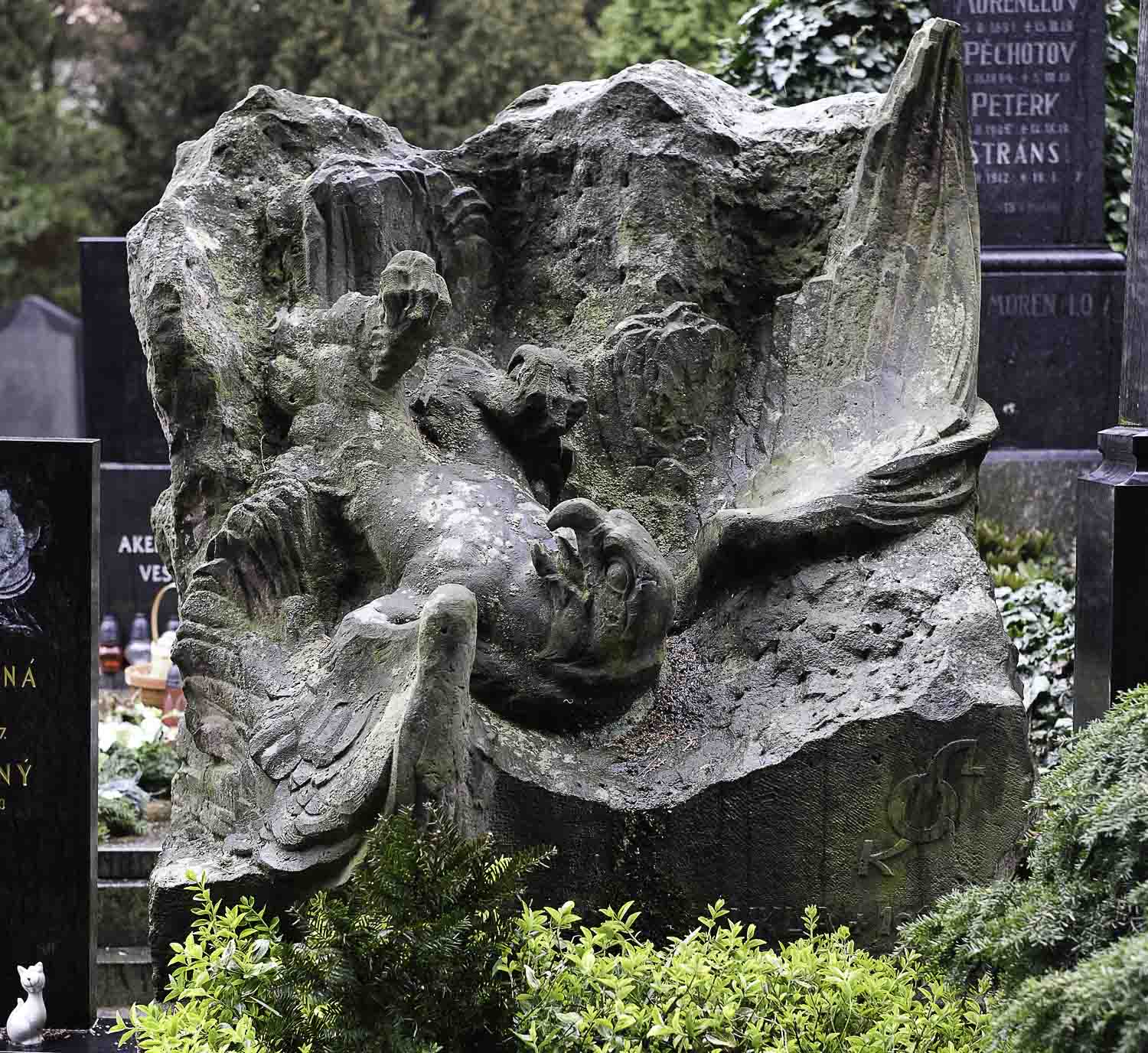 The strange woman statue leaning forward was made by the reputable Czech sculptor Olbram Zoubek. The fallen eagle was spectacular – but who would want it on a grave? I found out that Josef Suk was the grandson of Antonín Dvořák. I loved his beautiful broken violin.