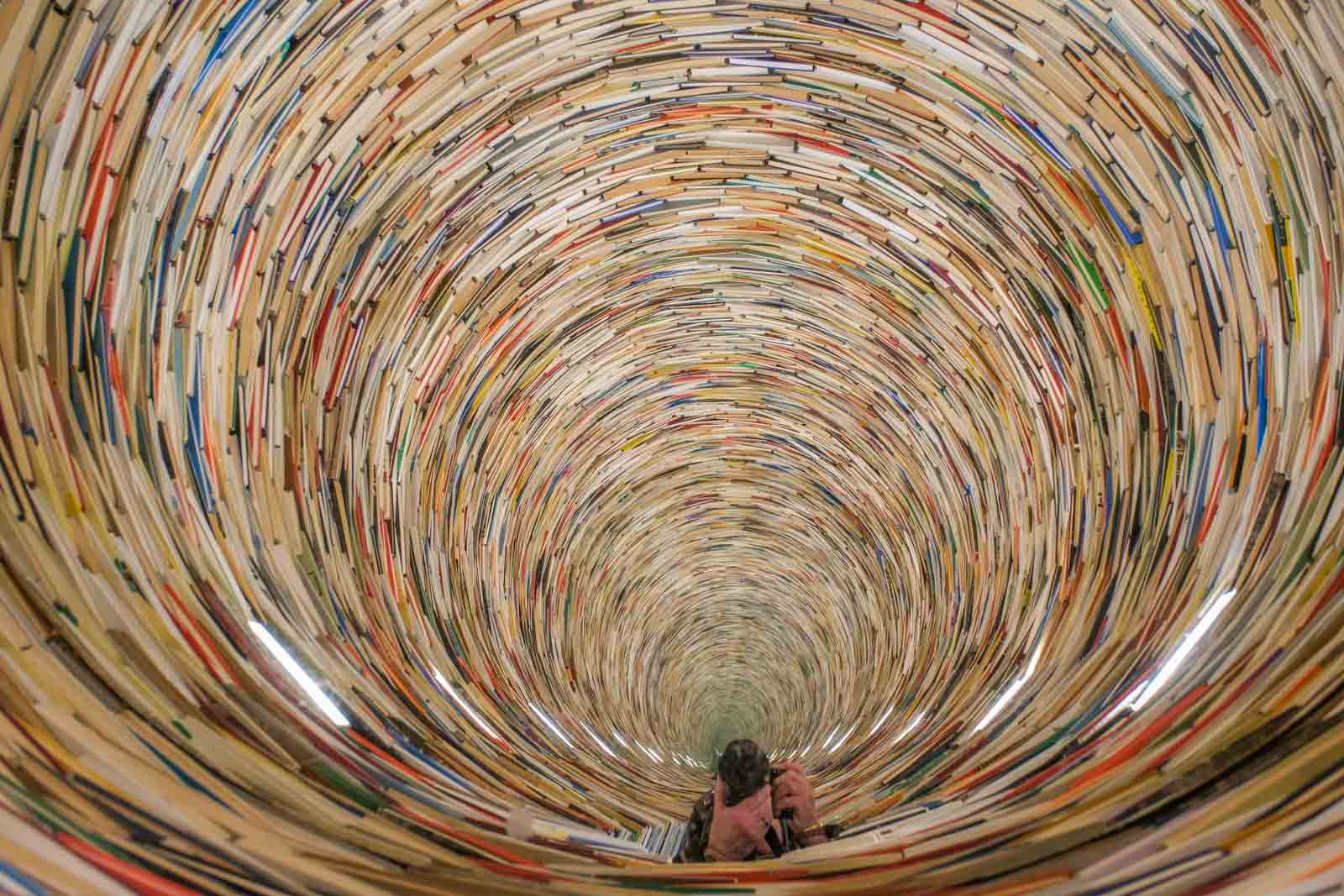• Thank you, Shelley! Well, to tell you the truth, we happened to walk past the city’s library (Prague)and there was a gigantic queue outside. We decided to return the day after instead. And – those books were built up in a trumpet like cone – I guess there must have been mirrors inside. We looked into it and was rather mezmerised. They told us the queue was due to a message on instagram about this.