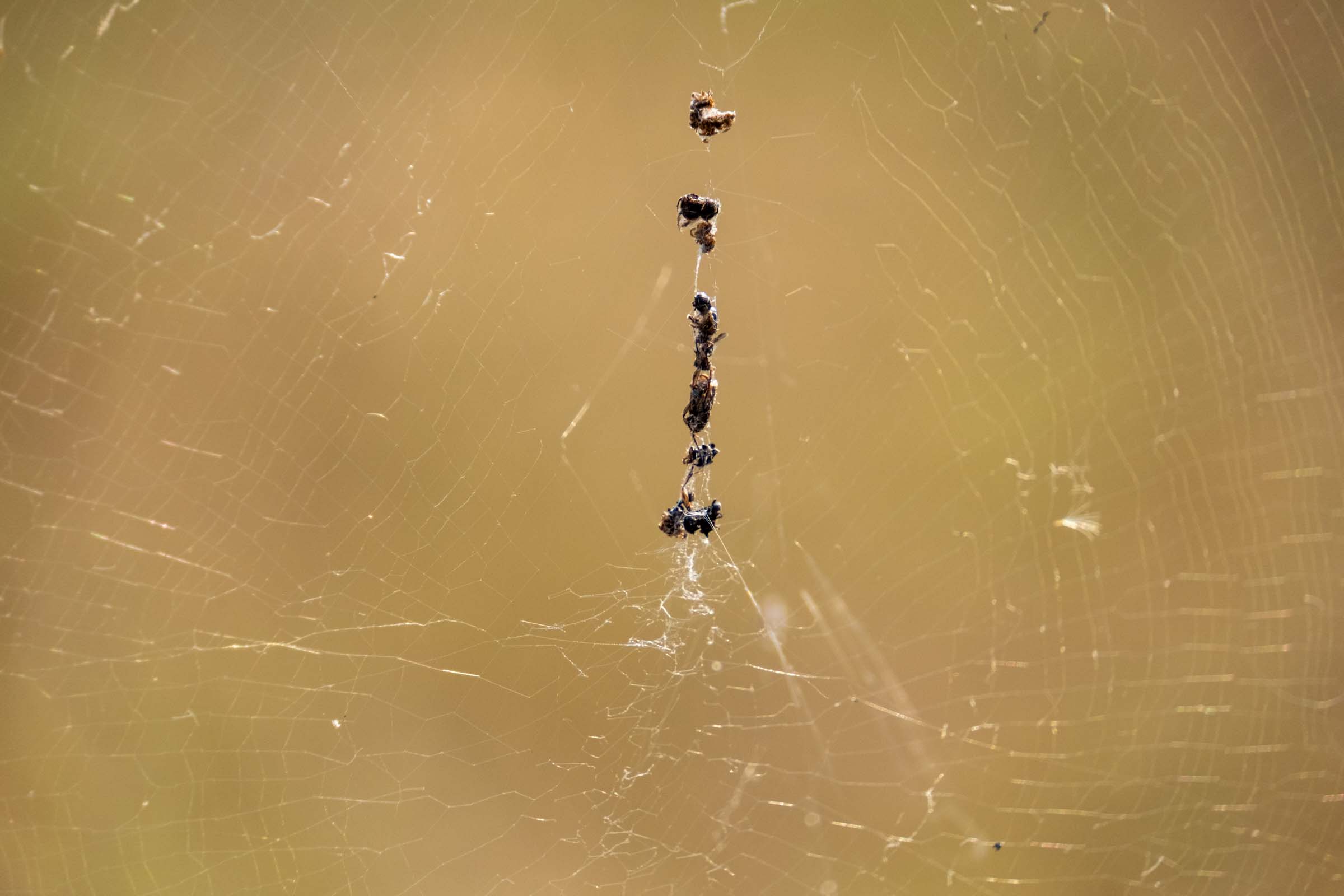 The female is a giant and the male a dwarf in comparison. Several males can sit in the web, waiting for an opportunity to mate. If they move too fast though, they will be her prey instead of her lover.
