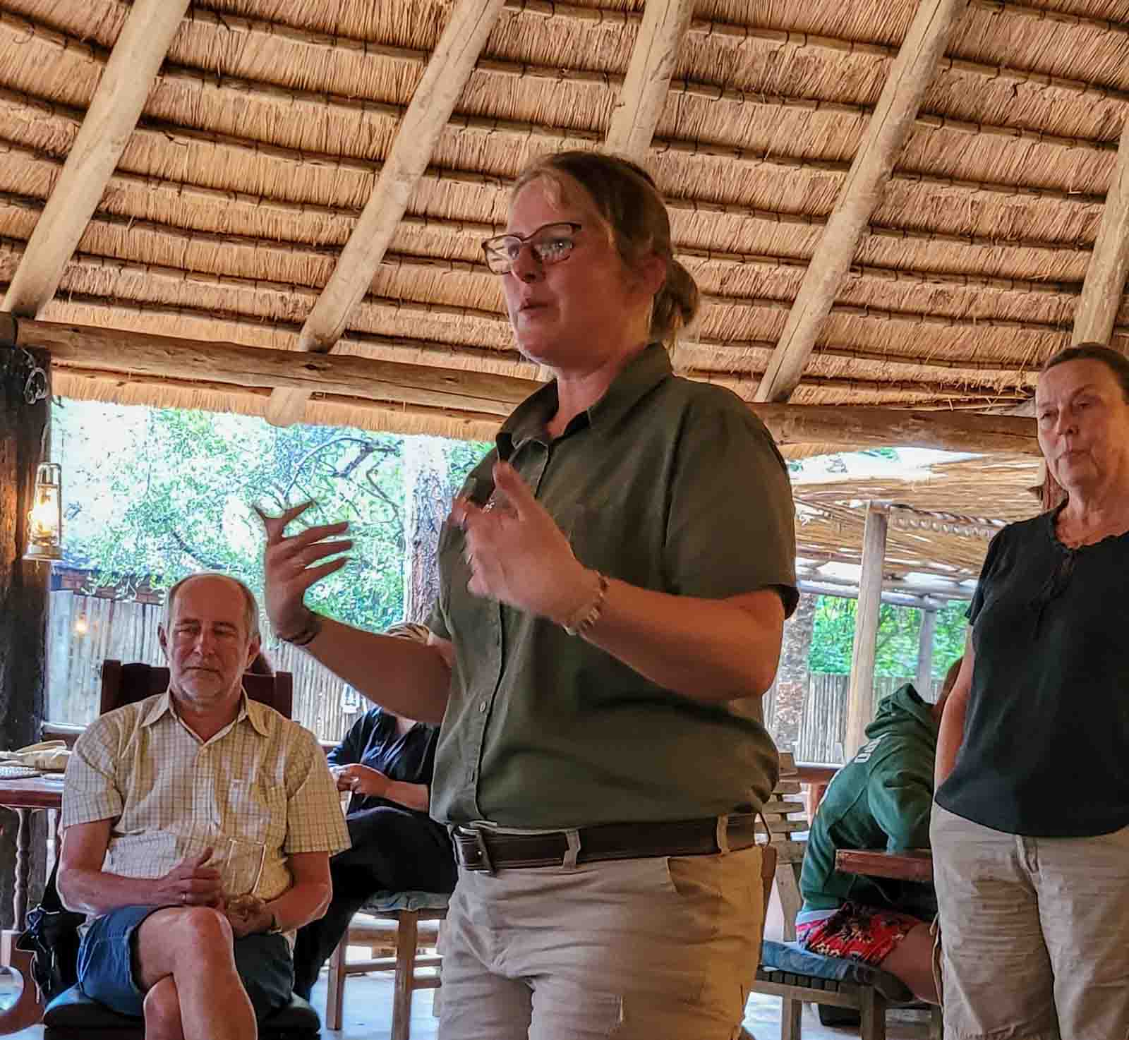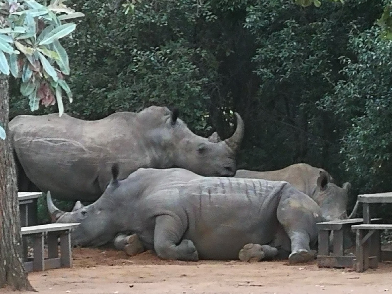 Finishing off with the wonderful ranger who had dedicated her whole life to the rhinos, and a phone photo from our guide, taken while passing by our outdoor picnic place…(where we used to sit peacefully at the tables – luckily without rhinos!) Thank you, Conni, for sending me those spectacular shots!