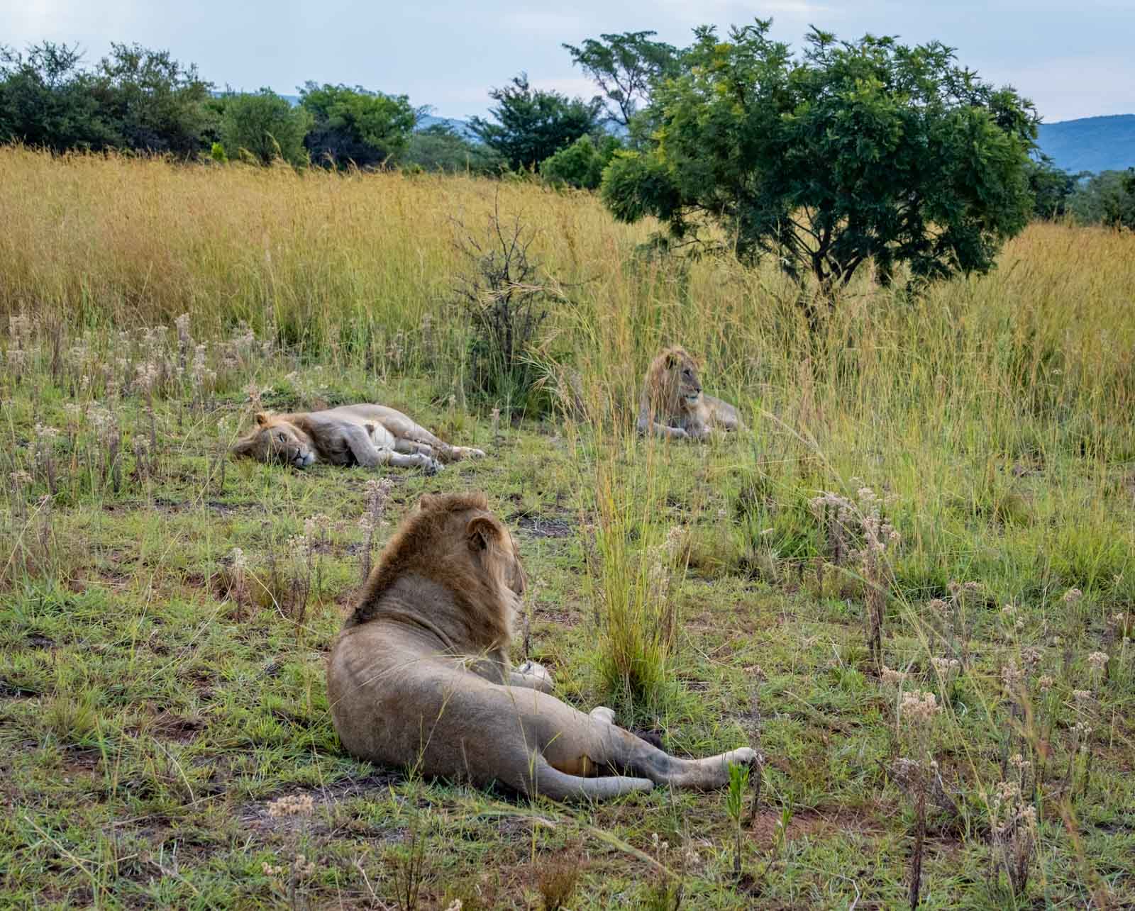 Lions are such beautiful big cats, our respect for them is great. They looked so calm and relaxed lying there together in the grass,