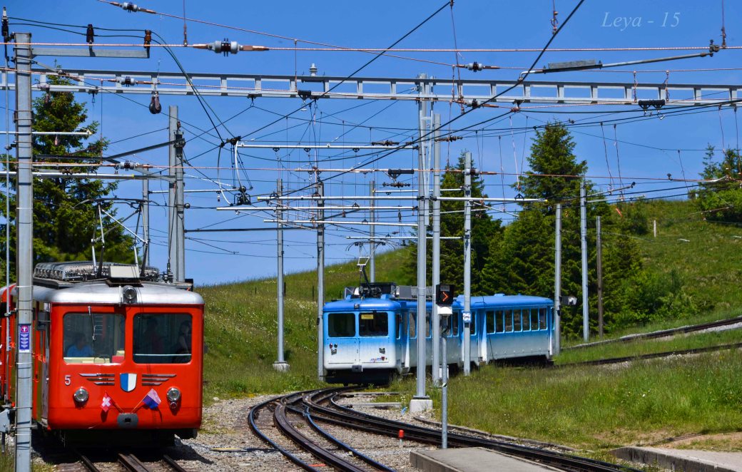 From where we left her in Vitznau there are only a few metres to the Rigibahn. This mountain railway opened in 1871 as the first one in Europe. In those days with steam engines, but since 1937 the trains are electrified.